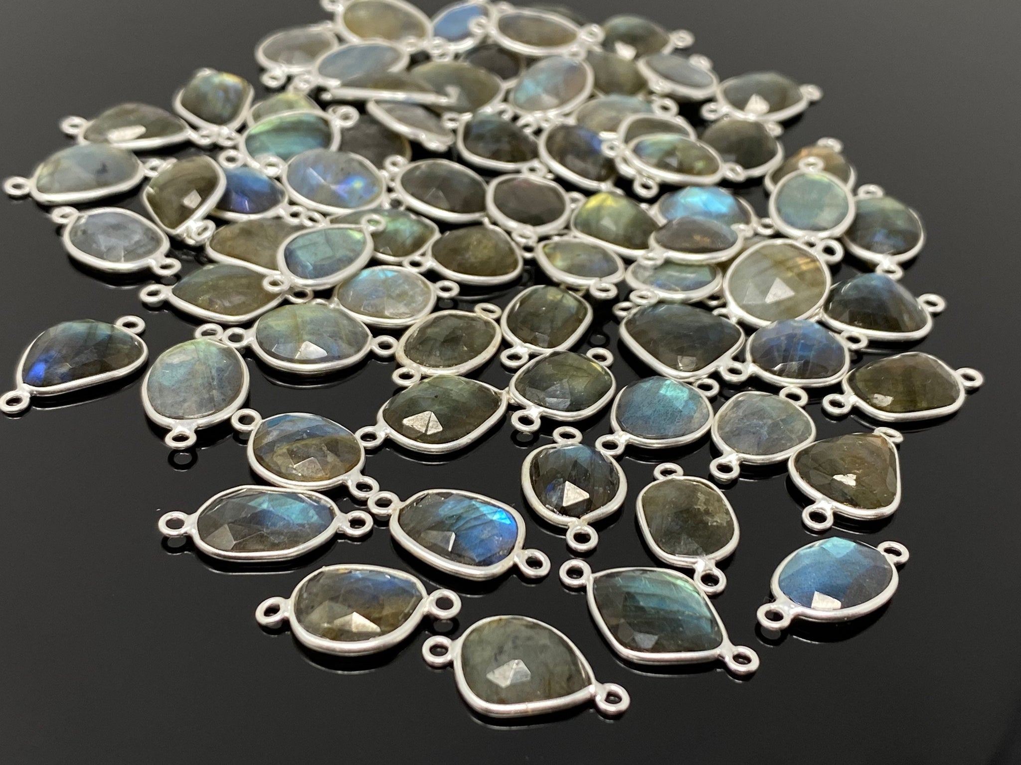 Labradorite Gemstone Bezel Connectors Sterling Silver Jewelry Supplies for Jewelry Making at Wholesale Price.