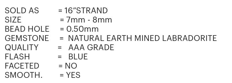 Labradorite Gemstone Beads - Blue Flash Smooth Labradorite Beads, Bulk Wholesale Beads for Jewelry Making, 7-8mm, 16" Strand