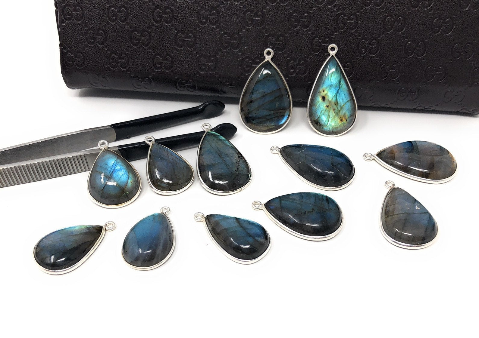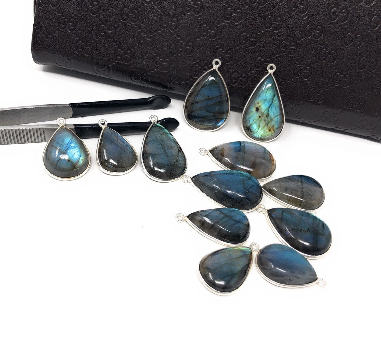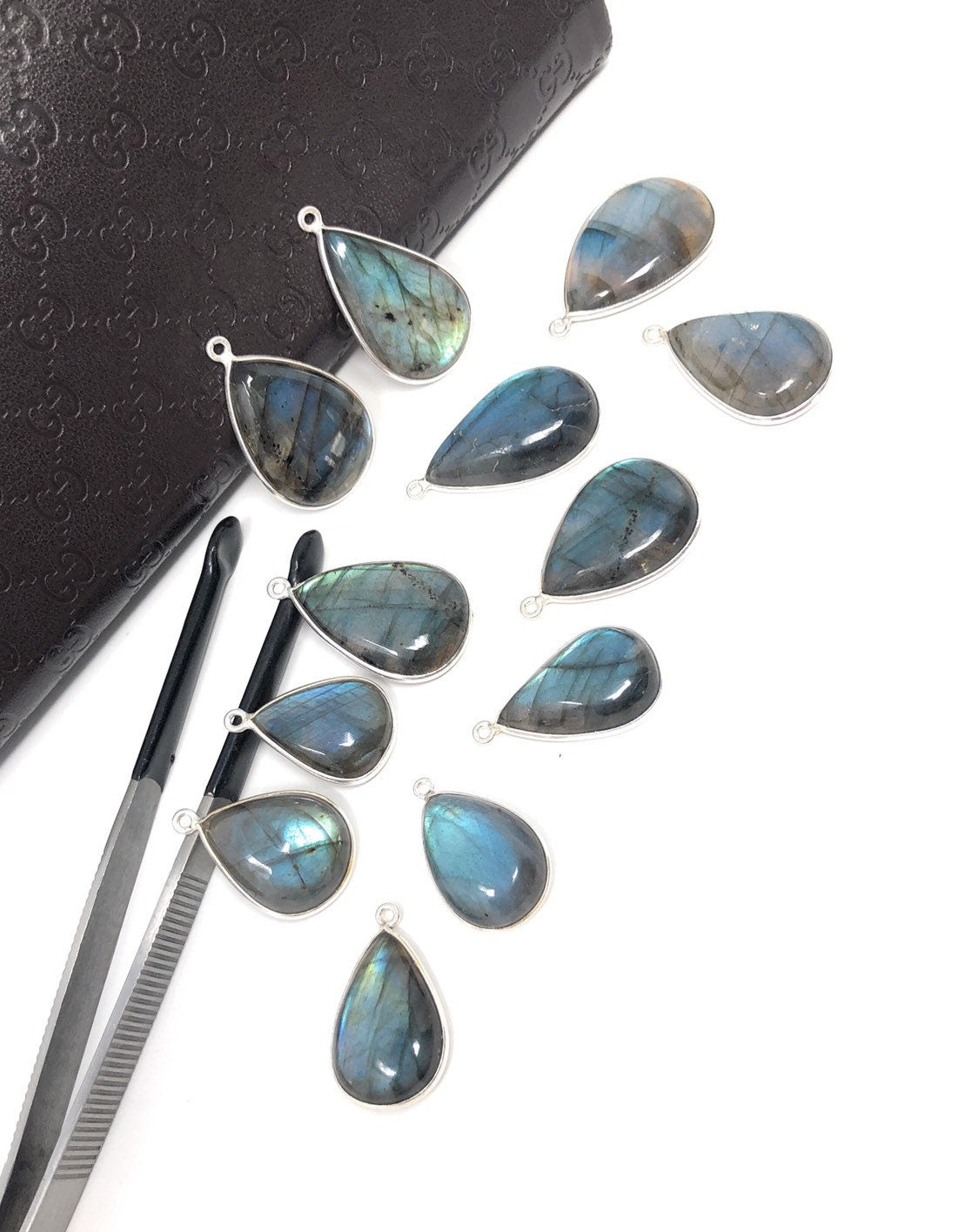 These beautiful Handmade Sterling Silver Natural Gemstone Labradorite Drop Shape Charms are an excellent choice for making any Jewelry Design.
