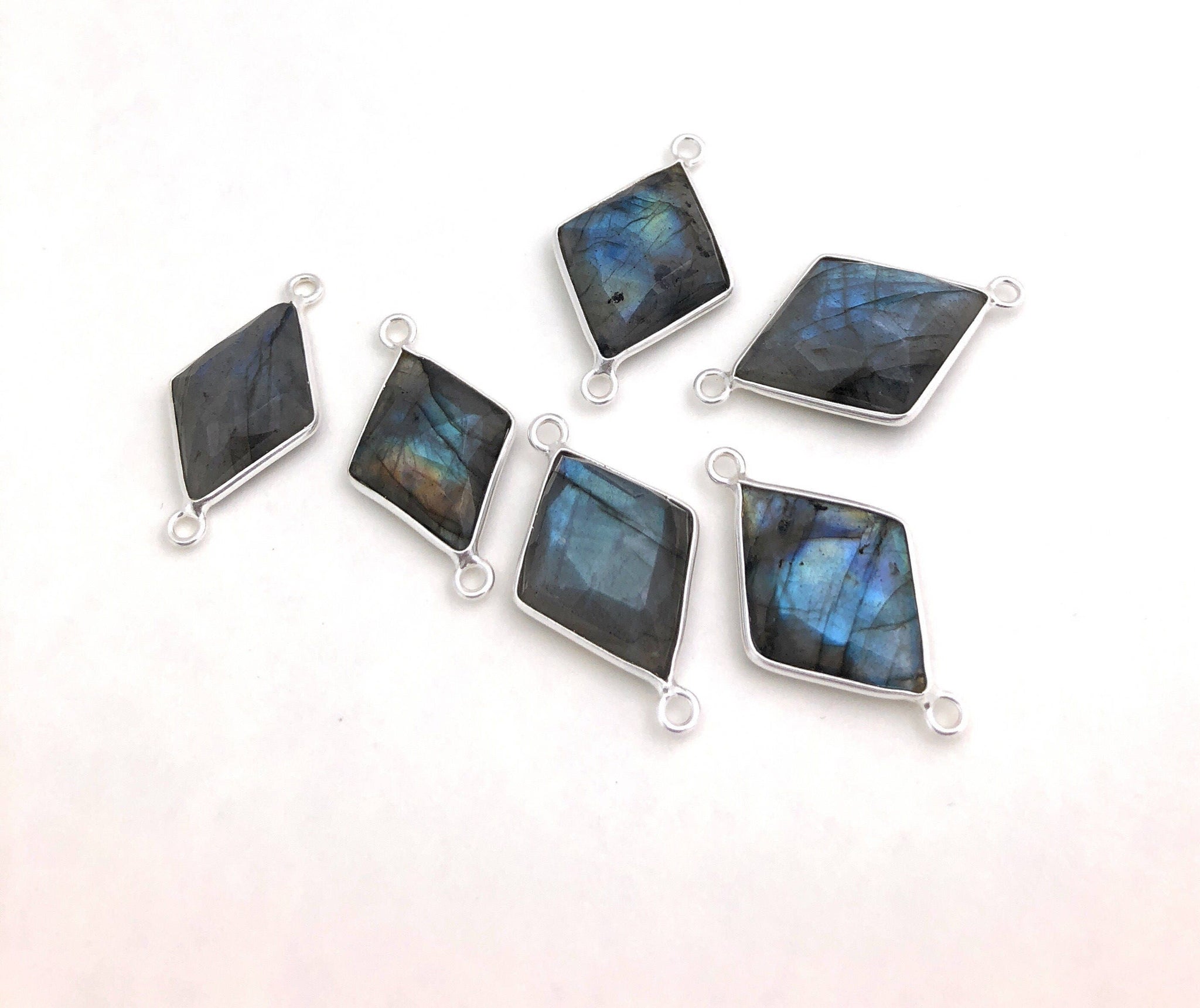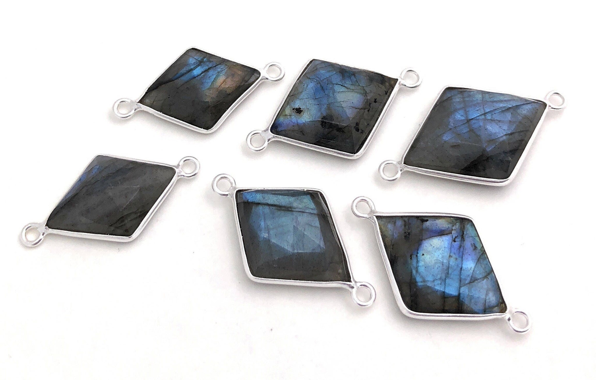These beautiful Handmade Sterling Silver Fancy Diamond Shape Large Size Natural Gemstone Faceted Labradorite Connectors are an excellent choice for making any Jewelry Design.