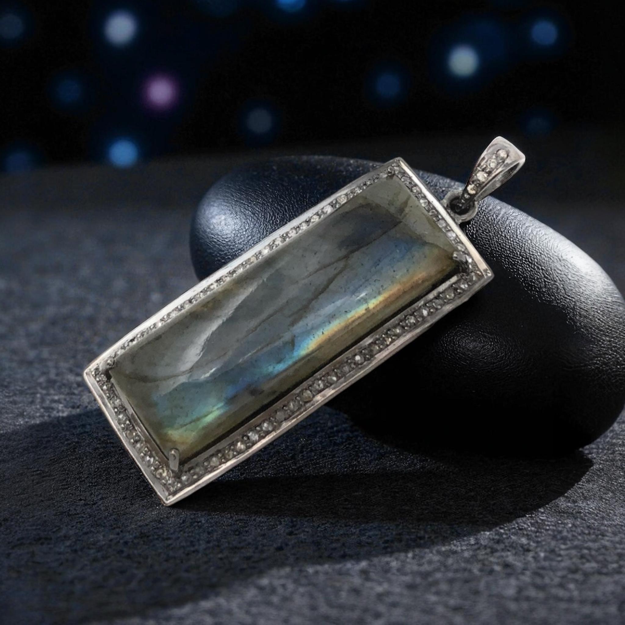 Discover the mystical power of labradorite with this captivating pave diamond pendant.
