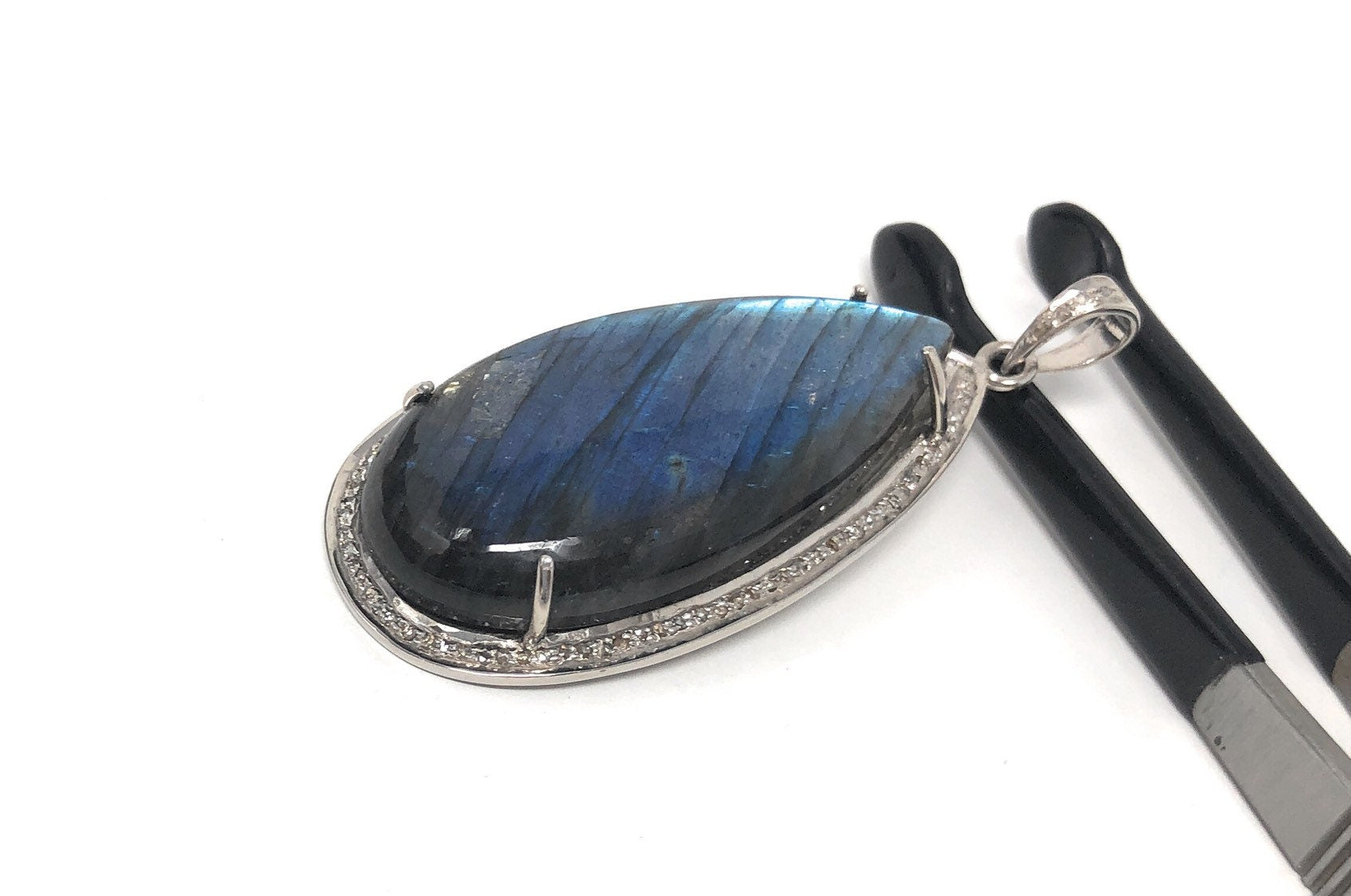 This exclusive beautiful Handmade AAA+ Grade Large Natural Labradorite Gemstone Drop Shape Rhodium Polish over 925 Sterling Silver Pave Diamond Bezel Setting Pendant is an excellent choice for any occasion and makes a great gift for the loved ones.