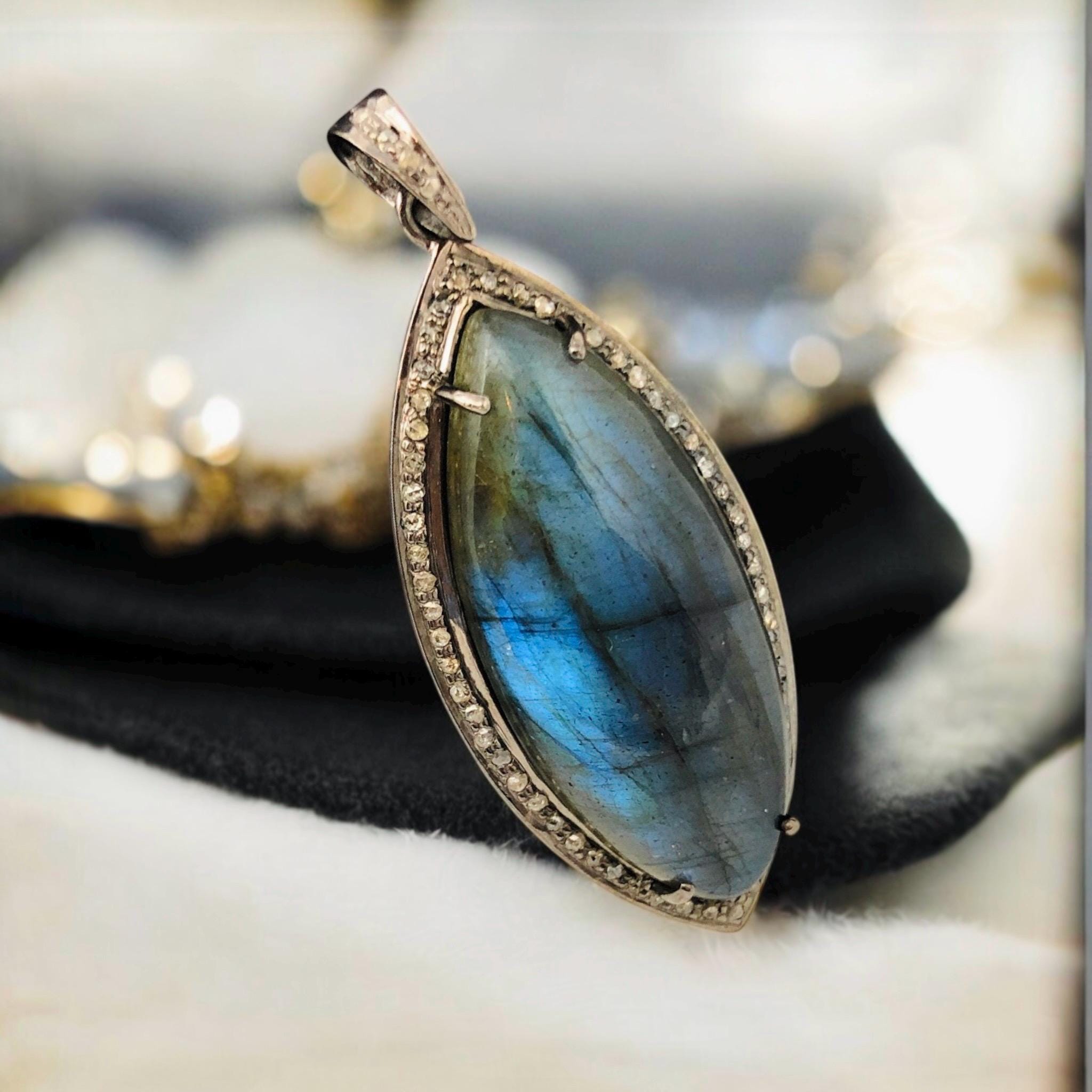 Discover the mystical power of labradorite with this captivating pave diamond pendant.