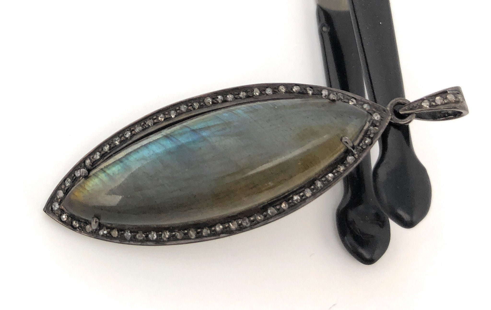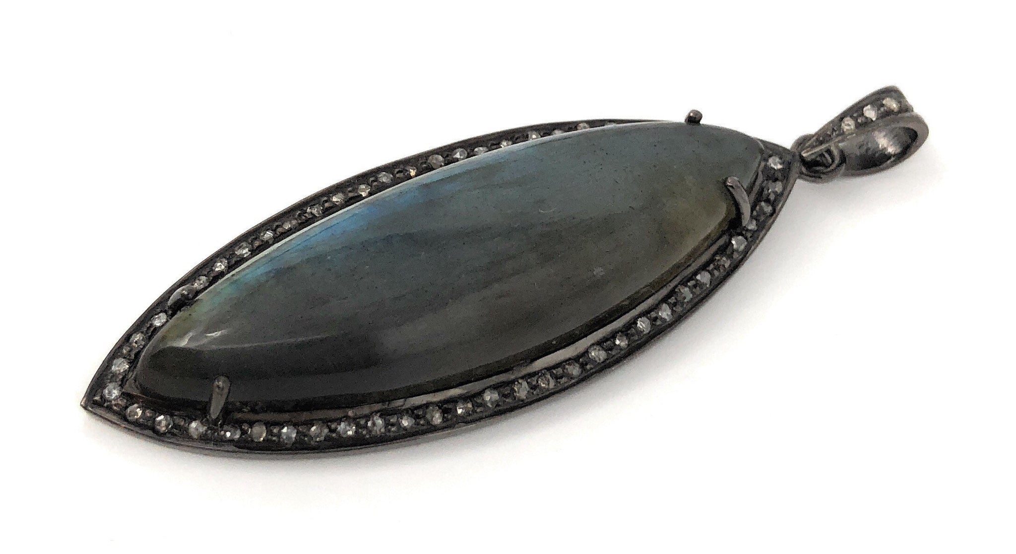 Oxidized Sterling Silver Natural Labradorite Gemstone Pave Diamond Exclusive Pendant at Wholesale Price.