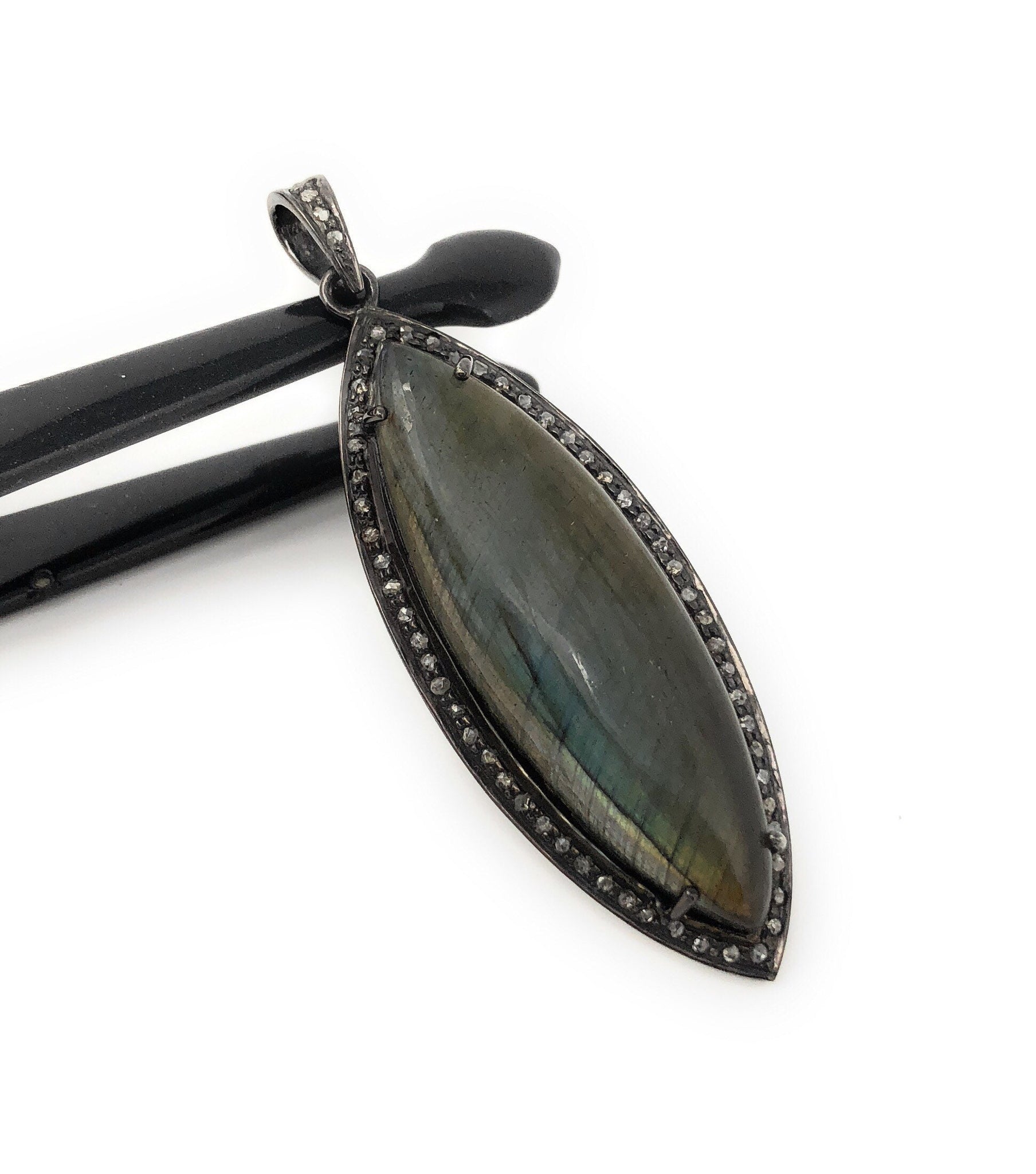 This exclusive beautiful Handmade AAA+ Grade Large Natural Labradorite Gemstone Marquise Shape Oxidized 925 Sterling Silver Pave Diamond Bezel Setting Pendant is an excellent choice for any occasion and makes a great gift for the loved ones.