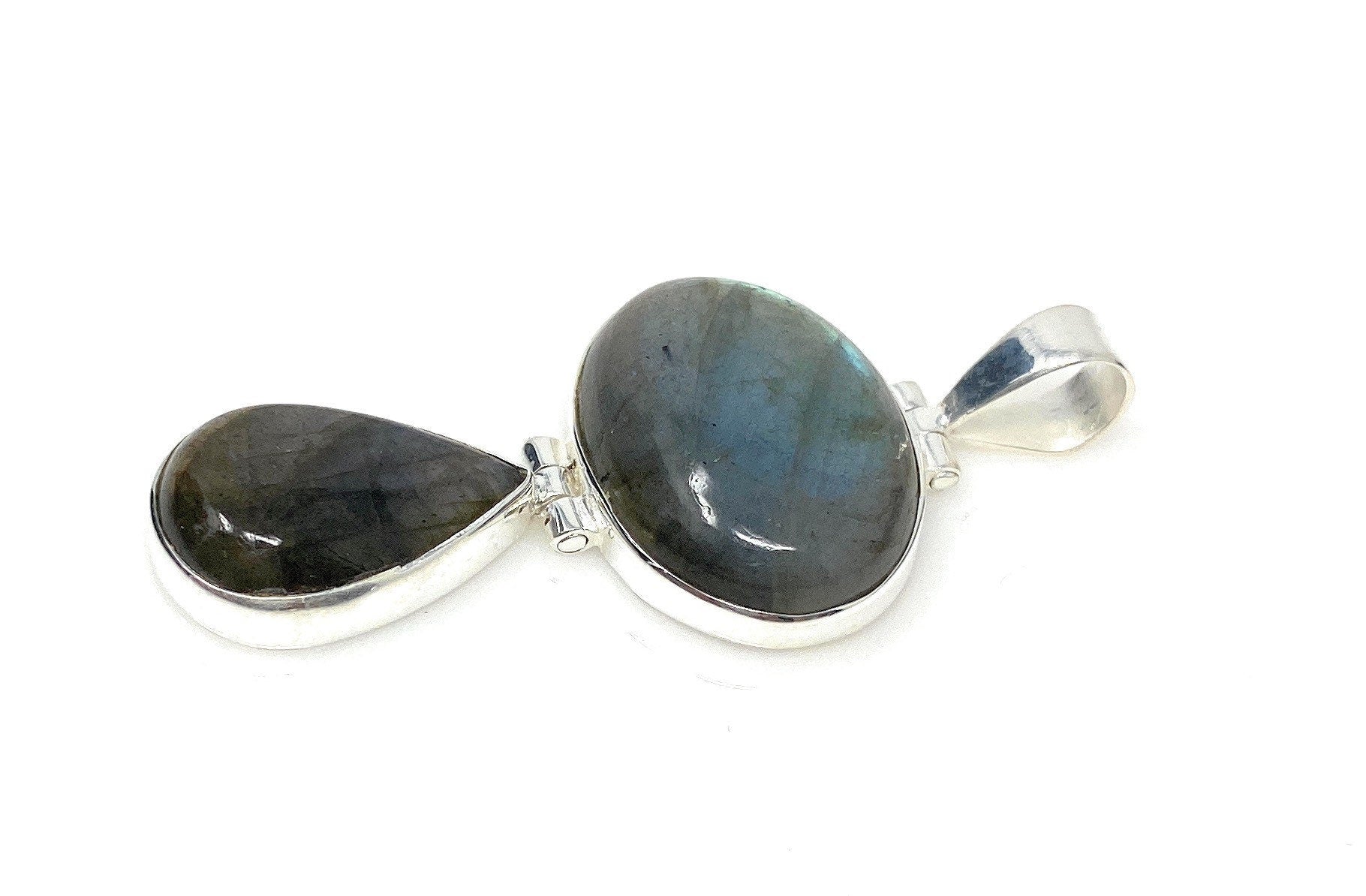 This beautiful Handmade Natural Labradorite 925 Sterling Silver Pendant is made with attaching 2 Pieces together with the unique hinge design which makes the pendant flexible and is an excellent choice for any occasion and makes a great gift for the loved ones.
