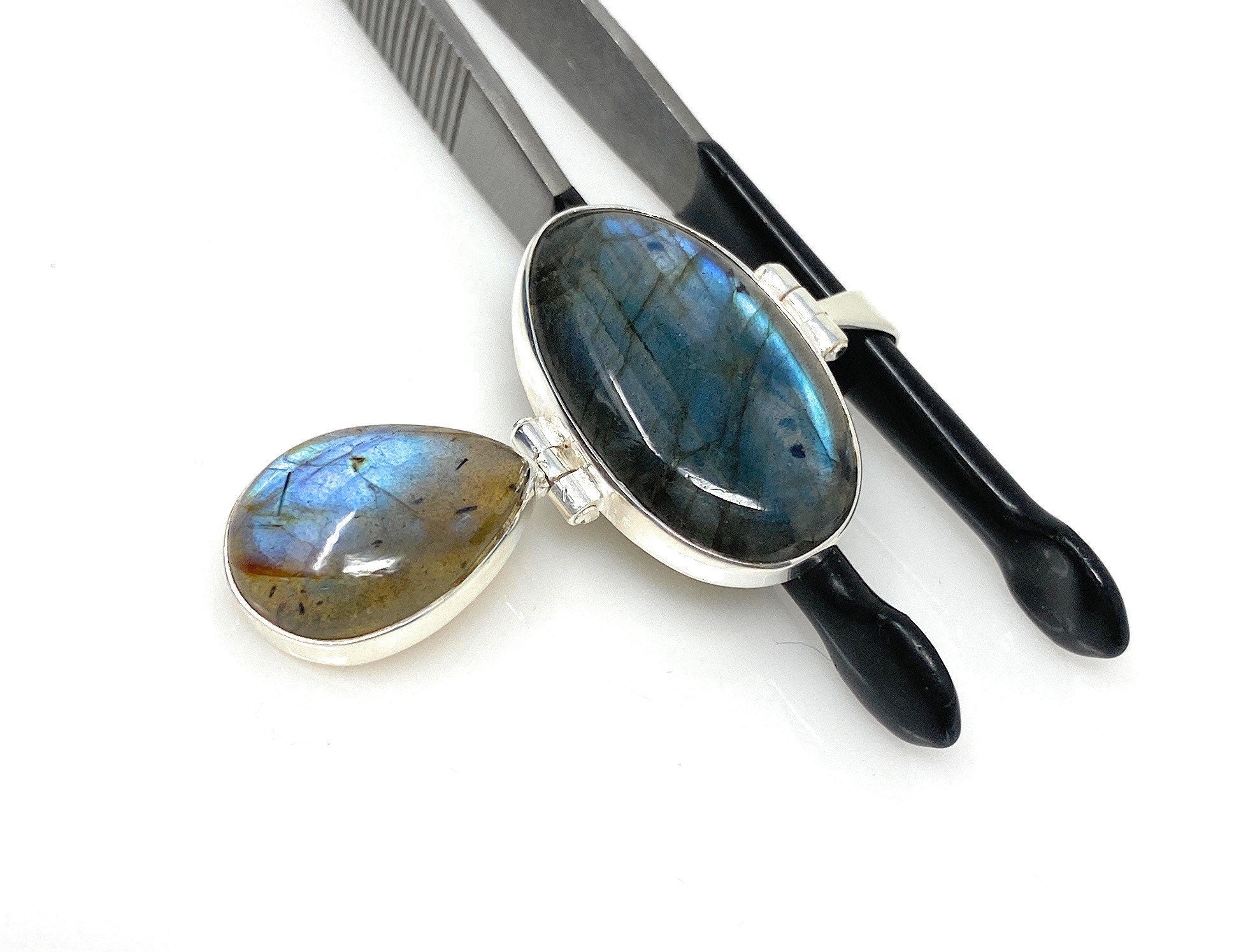 This beautiful Handmade Natural Labradorite 925 Sterling Silver Pendant is made with attaching 2 Pieces together with the unique hinge design which makes the pendant flexible and is an excellent choice for any occasion and makes a great gift for the loved ones.