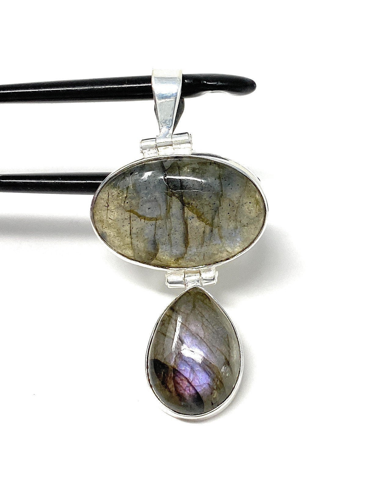 This beautiful Handmade Natural Labradorite 925 Sterling Silver Pendant is made with attaching 2 Pieces together with the unique hinge design which makes the pendant flexible and is an excellent choice for any occasion and makes a great gift for the loved ones.