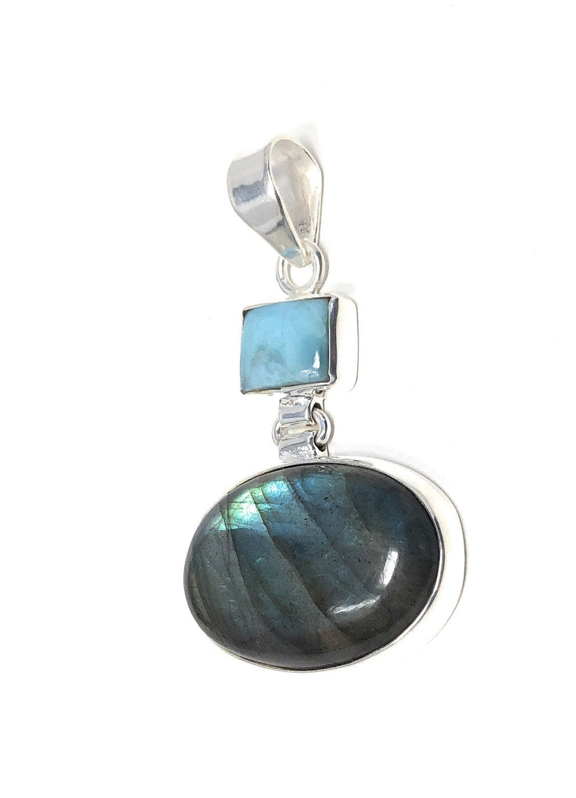 Labradorite and Larimar Gemstone Sterling Silver Pendant Jewelry at Wholesale Price.