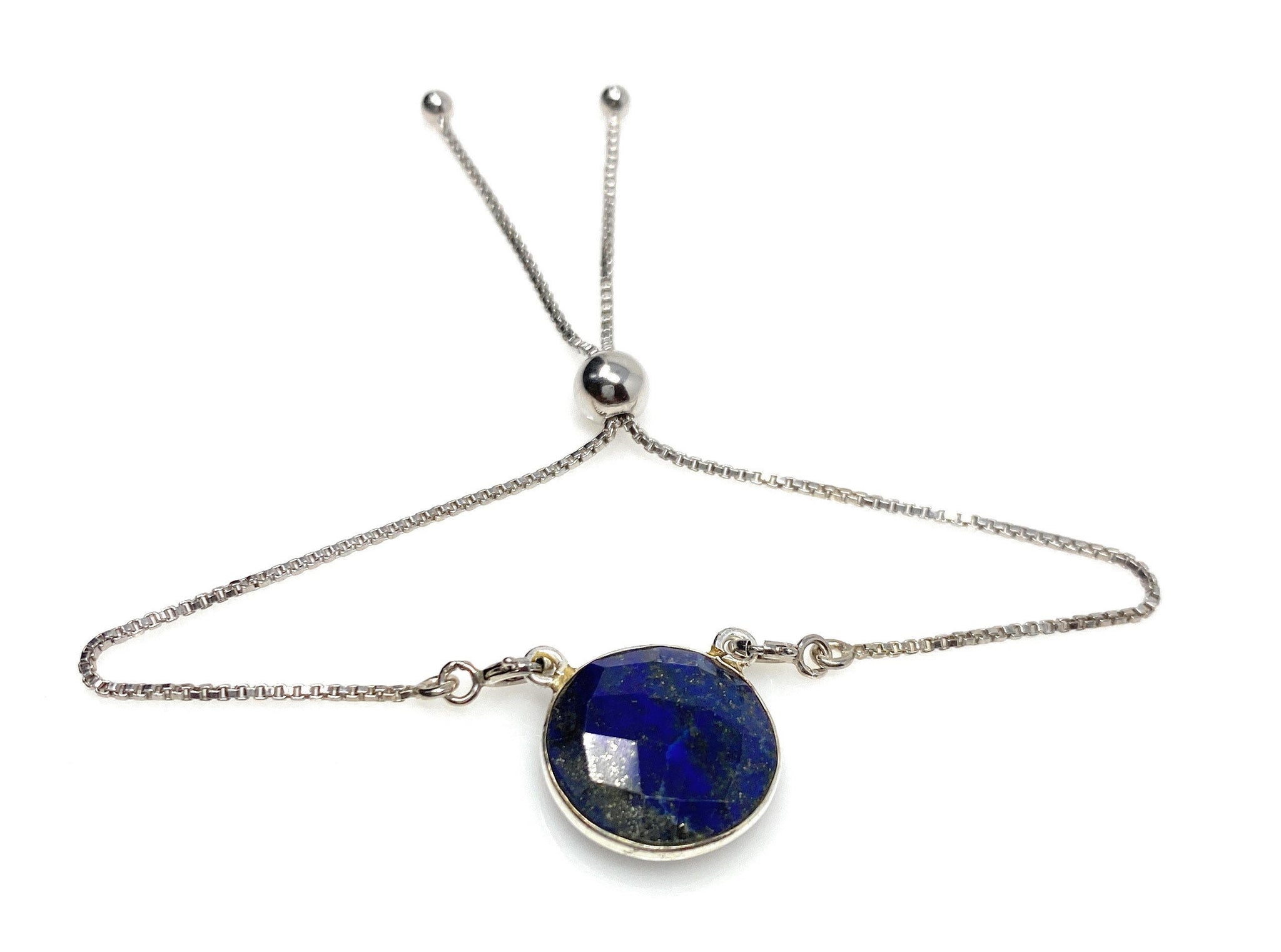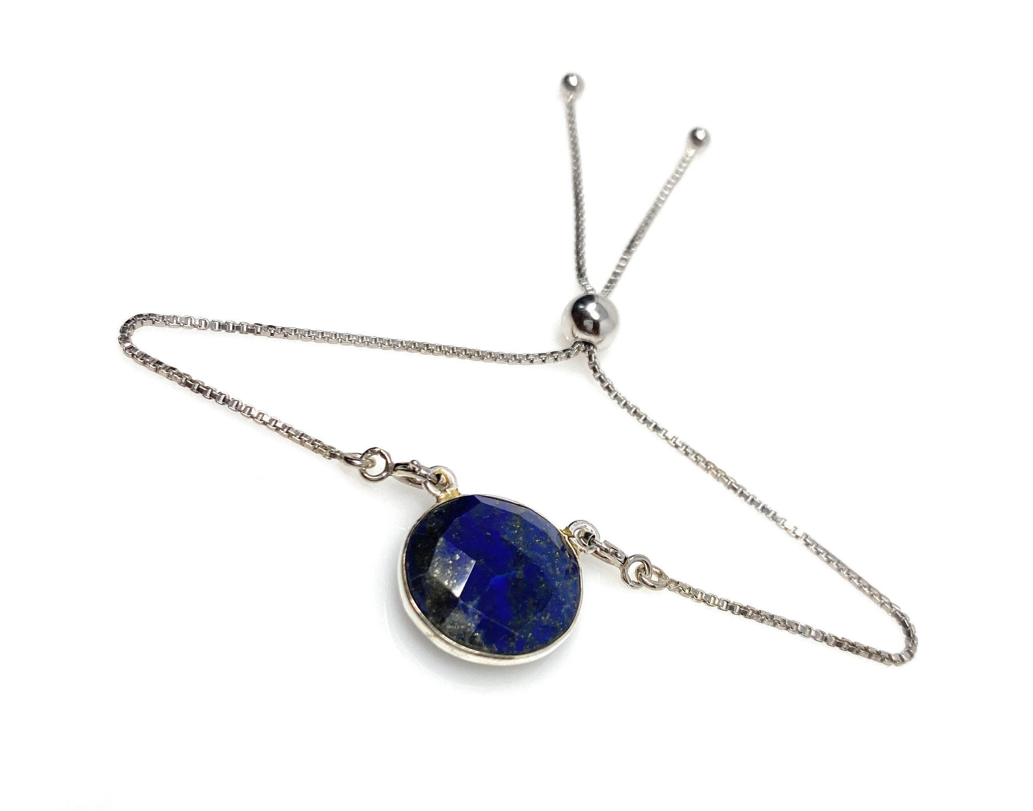 Lapis Lazuli Gemstone Sterling Silver Adjustable Bracelet Jewelry at Wholesale Price.