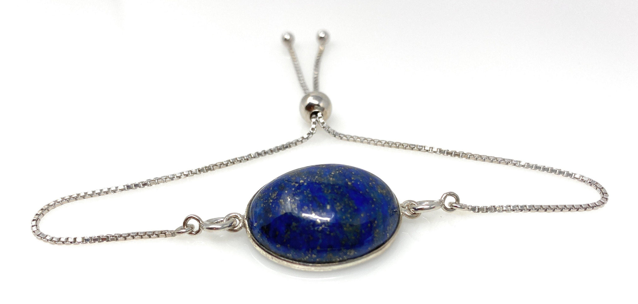 This beautiful Handmade AAA Grade Natural Lapis Lazuli Gemstone Oval Shape 925 Sterling Silver Adjustable Bracelet is an excellent choice for any occasion and makes a great gift for the loved ones.