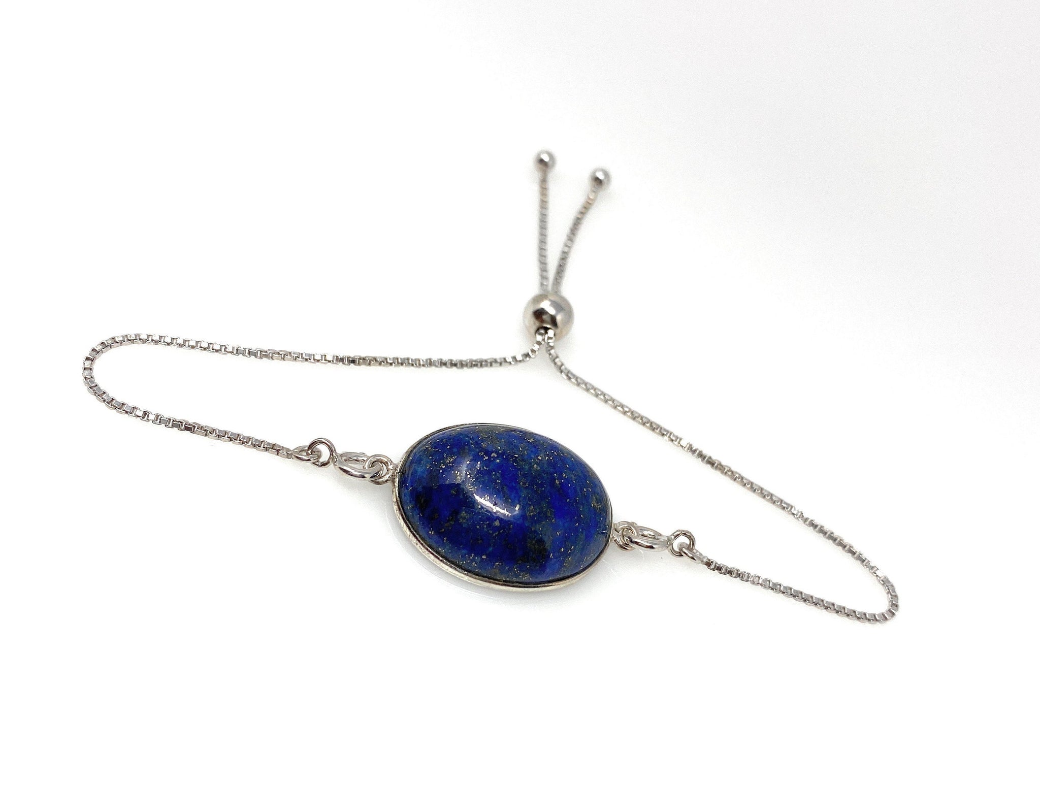 Lapis Lazuli Gemstone Bracelet, Sterling Silver Bolo Bracelet, AAA Quality Lapis Lazuli Bracelet, Gifts for Her