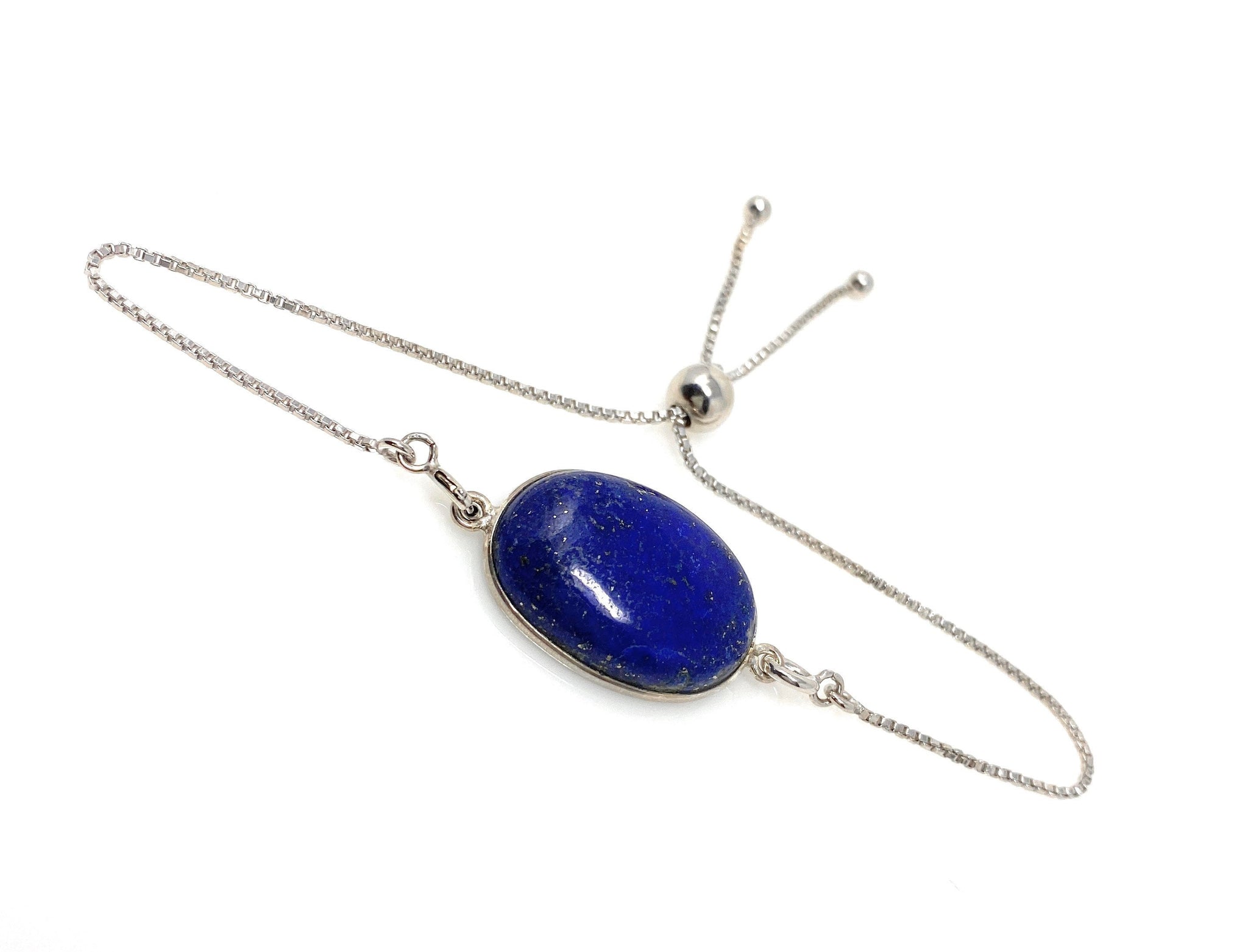Lapis Lazuli Gemstone Bracelet, Sterling Silver Adjustable Bolo Bracelet, AAA Quality Lapis Lazuli Bracelet, Gifts for Her