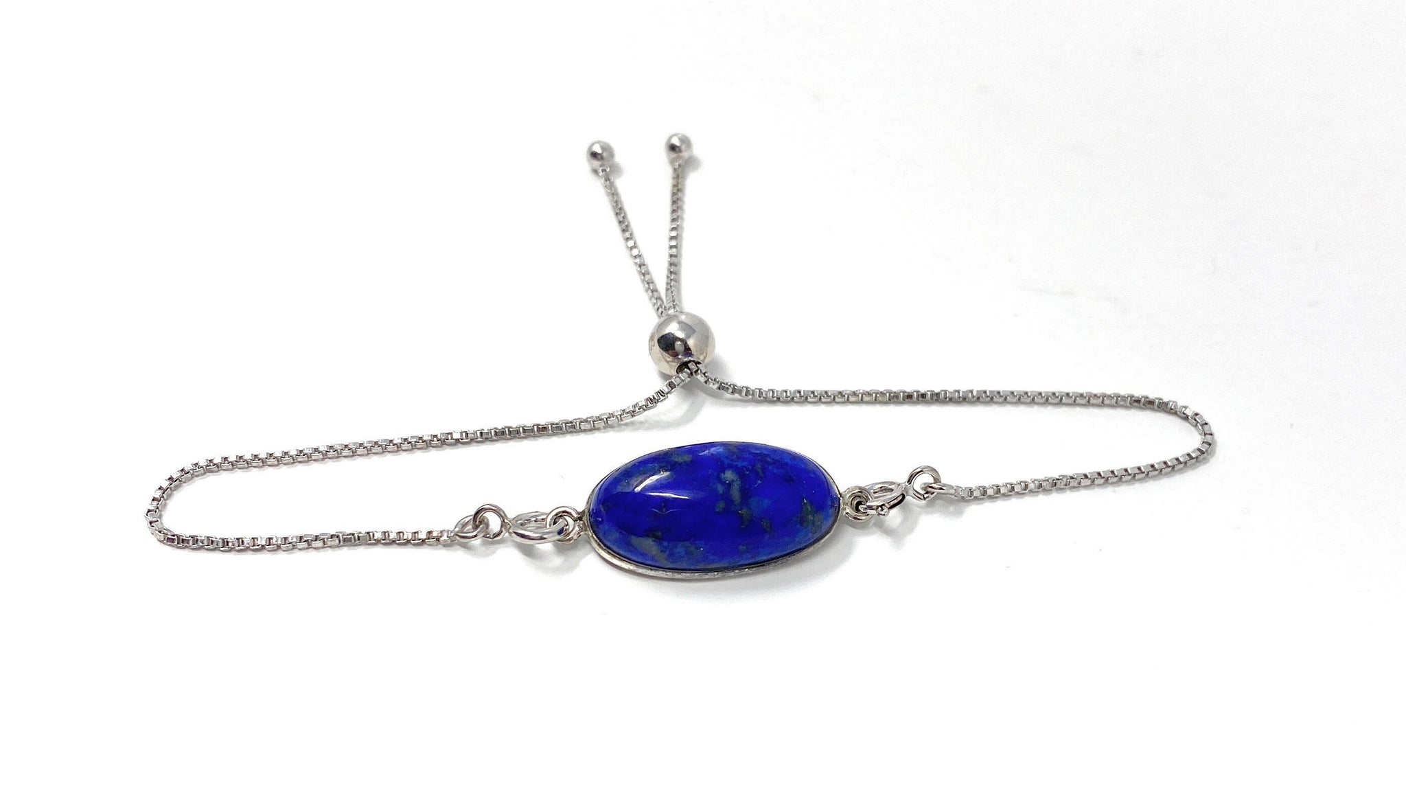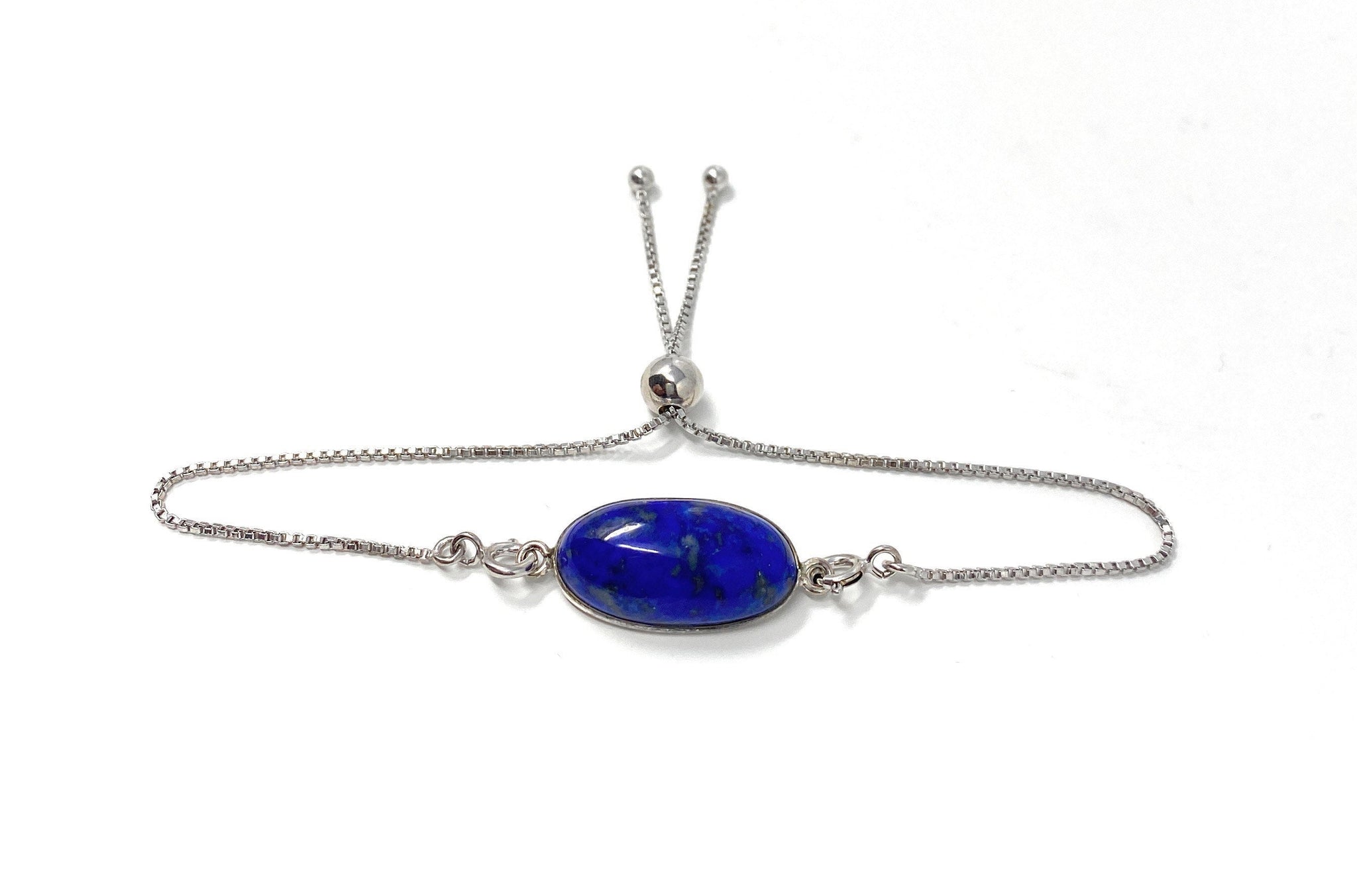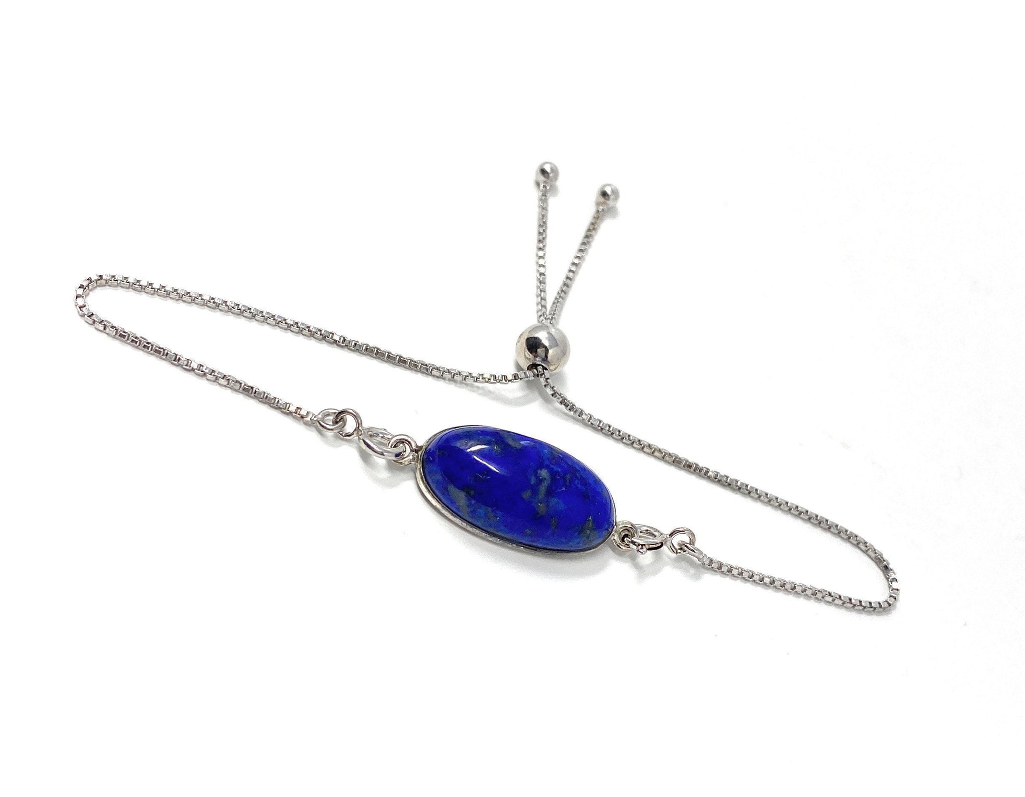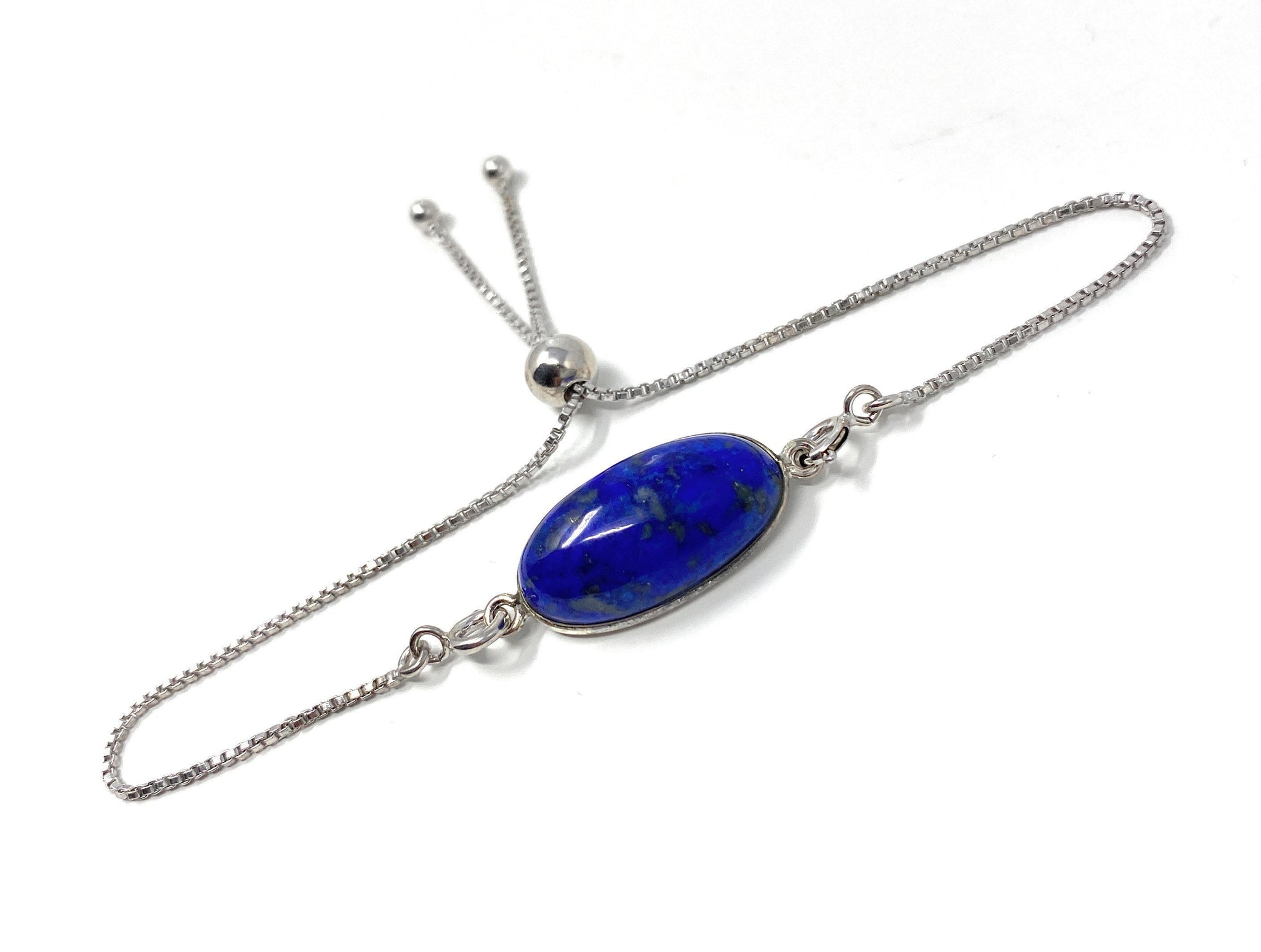 Lapis Lazuli Gemstone Bracelet, Sterling Silver Bolo Bracelet, AAA Quality Lapis Lazuli Bracelet, Gifts for Her