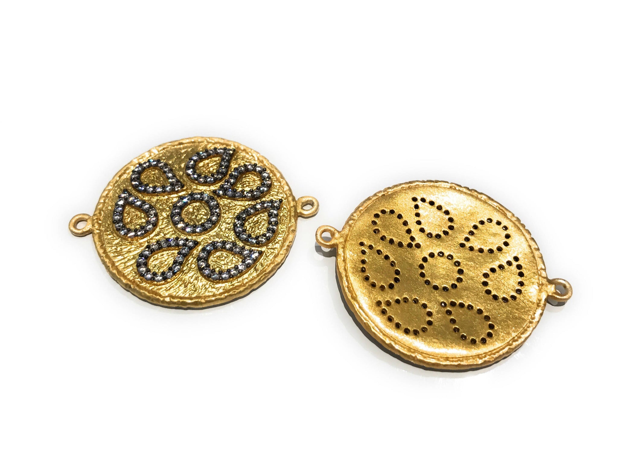 Gold Round Disc Charm Connector Jewelry Findings for Jewelry Making at Wholesale Price.