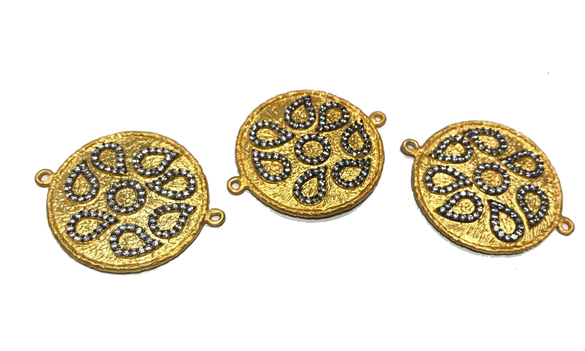 This Beautiful 14K Gold Plated Large Size CZ Round Disc Connector is an excellent choice for making Bracelets or Gorgeous Necklace.