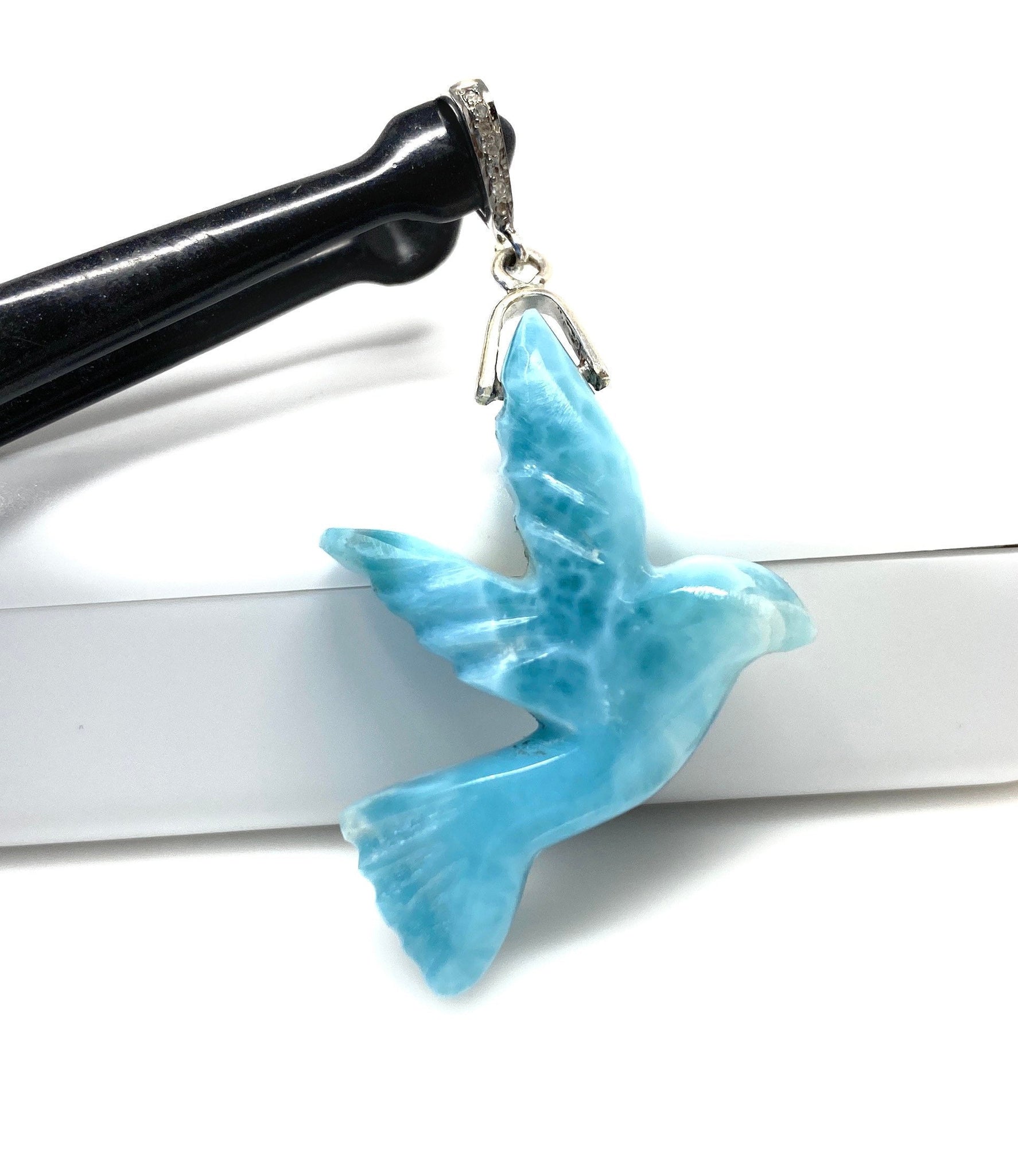 Larimar Bird Pave Diamond Pendant, Chakra Jewelry, Spiritual Healing Crystal Jewelry, Emotional Healing December Birthstone Large Pendant
