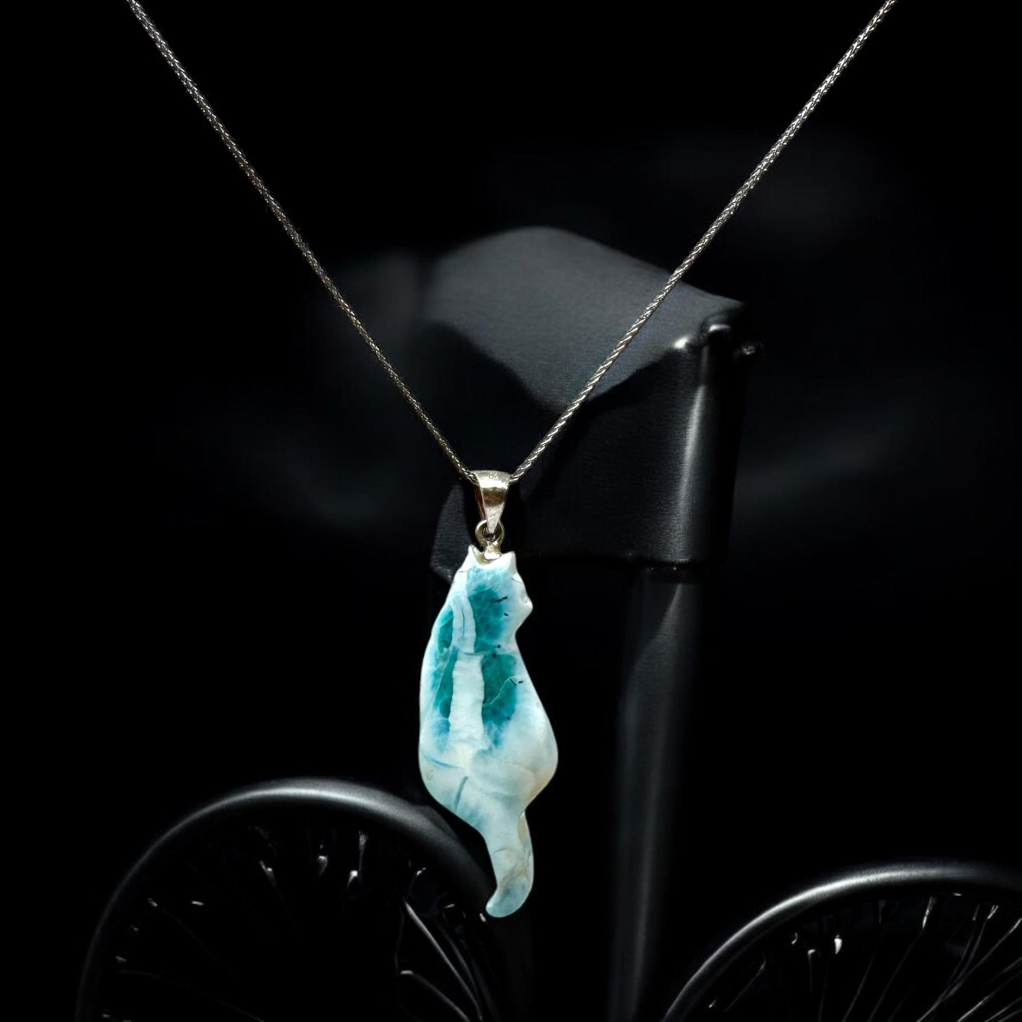 Larimar Gemstone Sterling Silver Cat Shape Pendant Necklace at Wholesale Price.