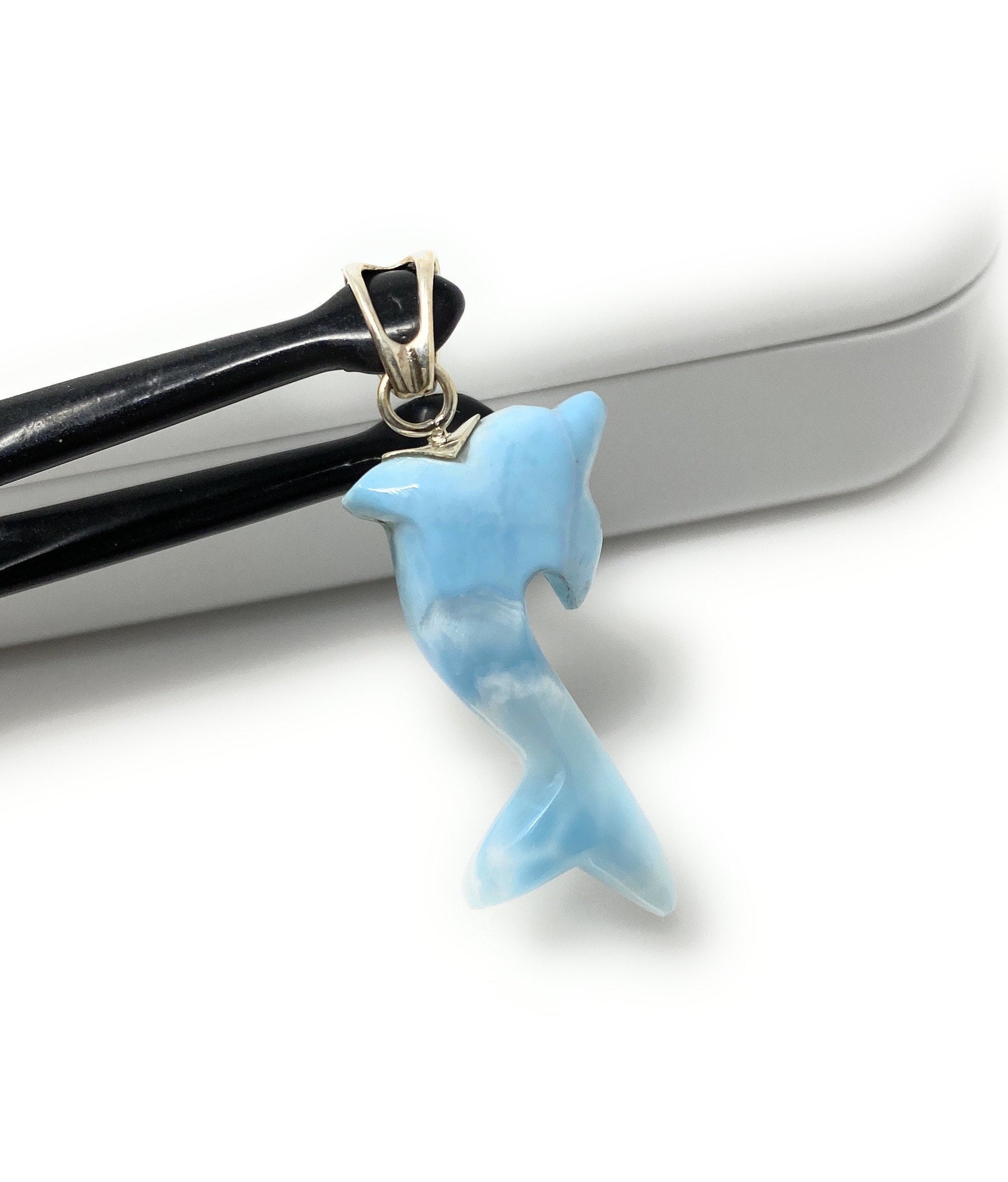 Larimar Dolphin Pendant, Caribbean Larimar Pendant, Atlantis Stone Bohemian Jewelry, Dominican Republic Larimar Pendant