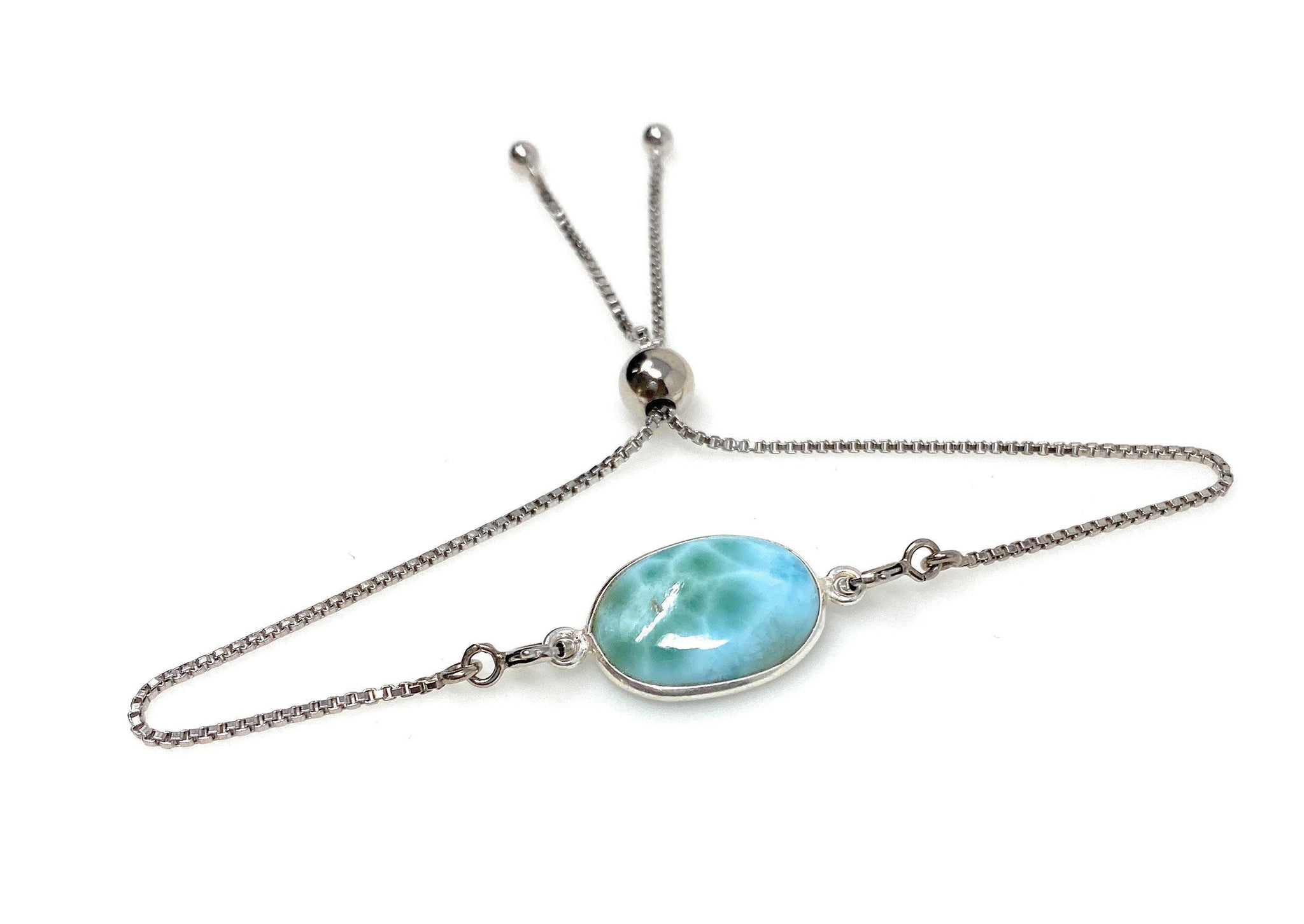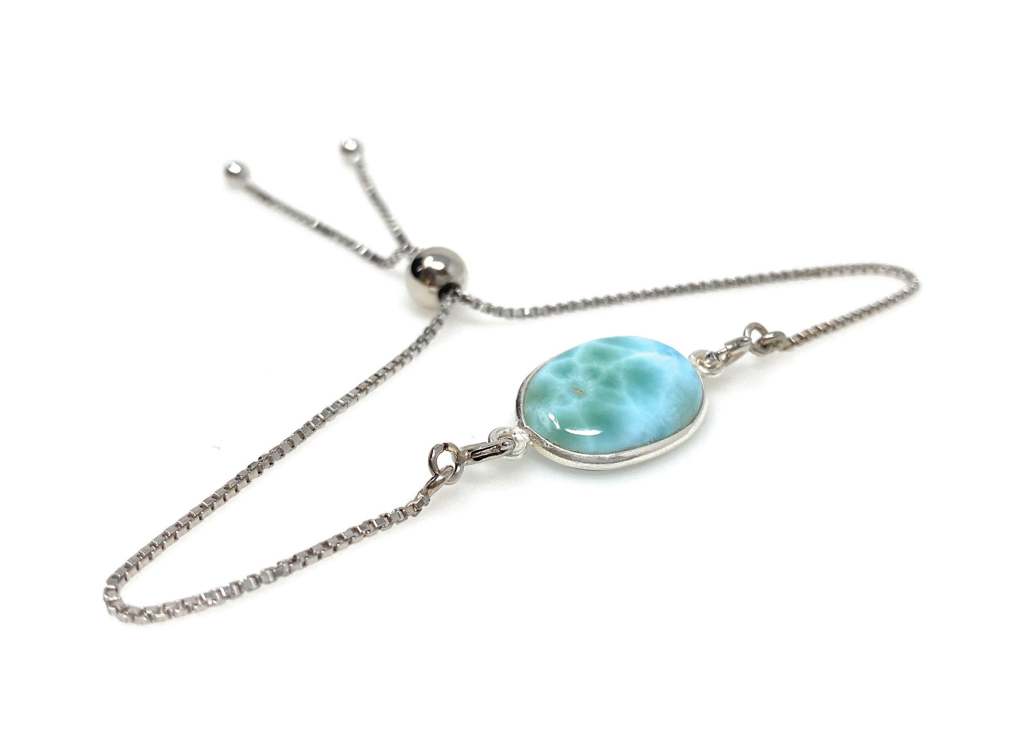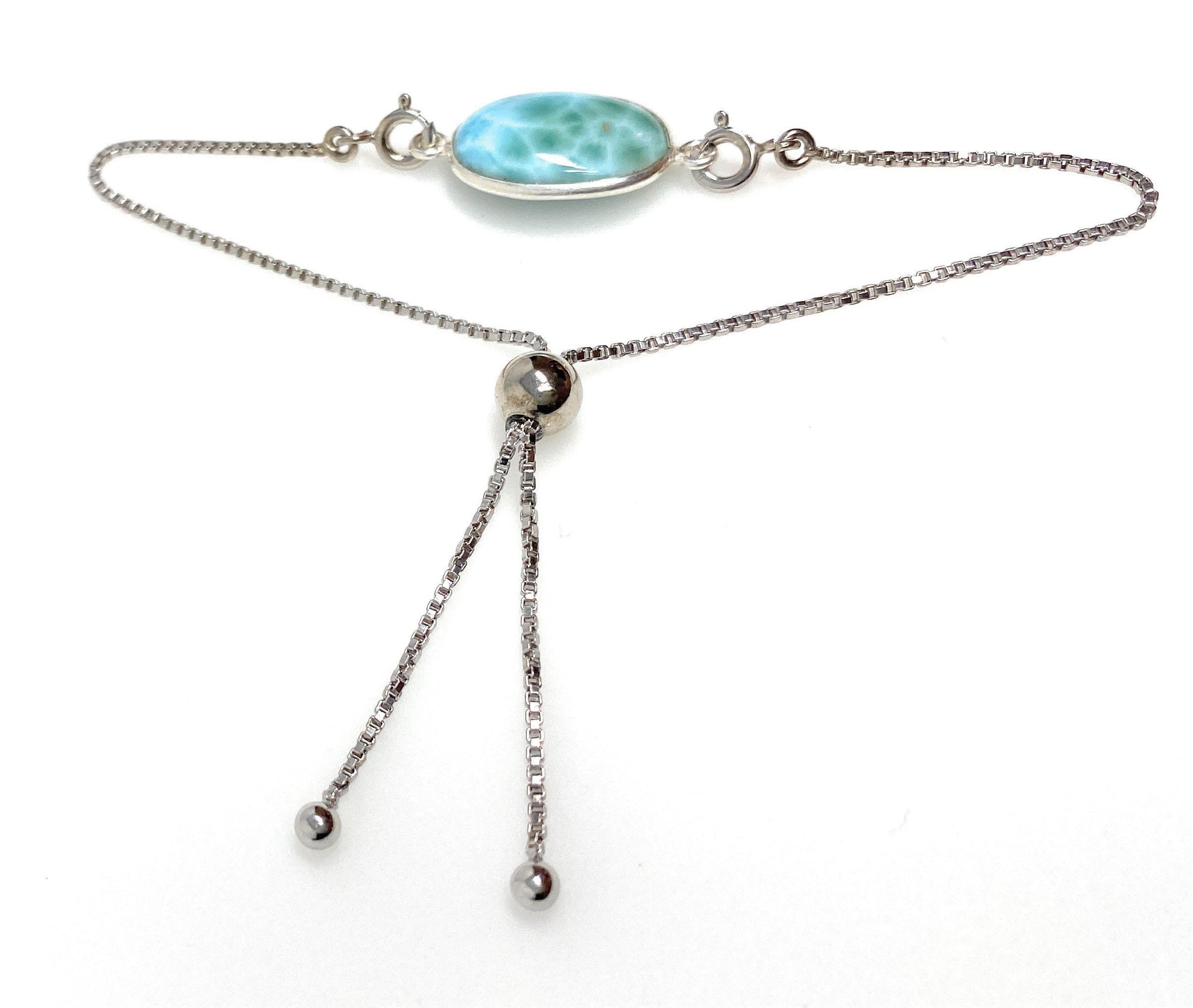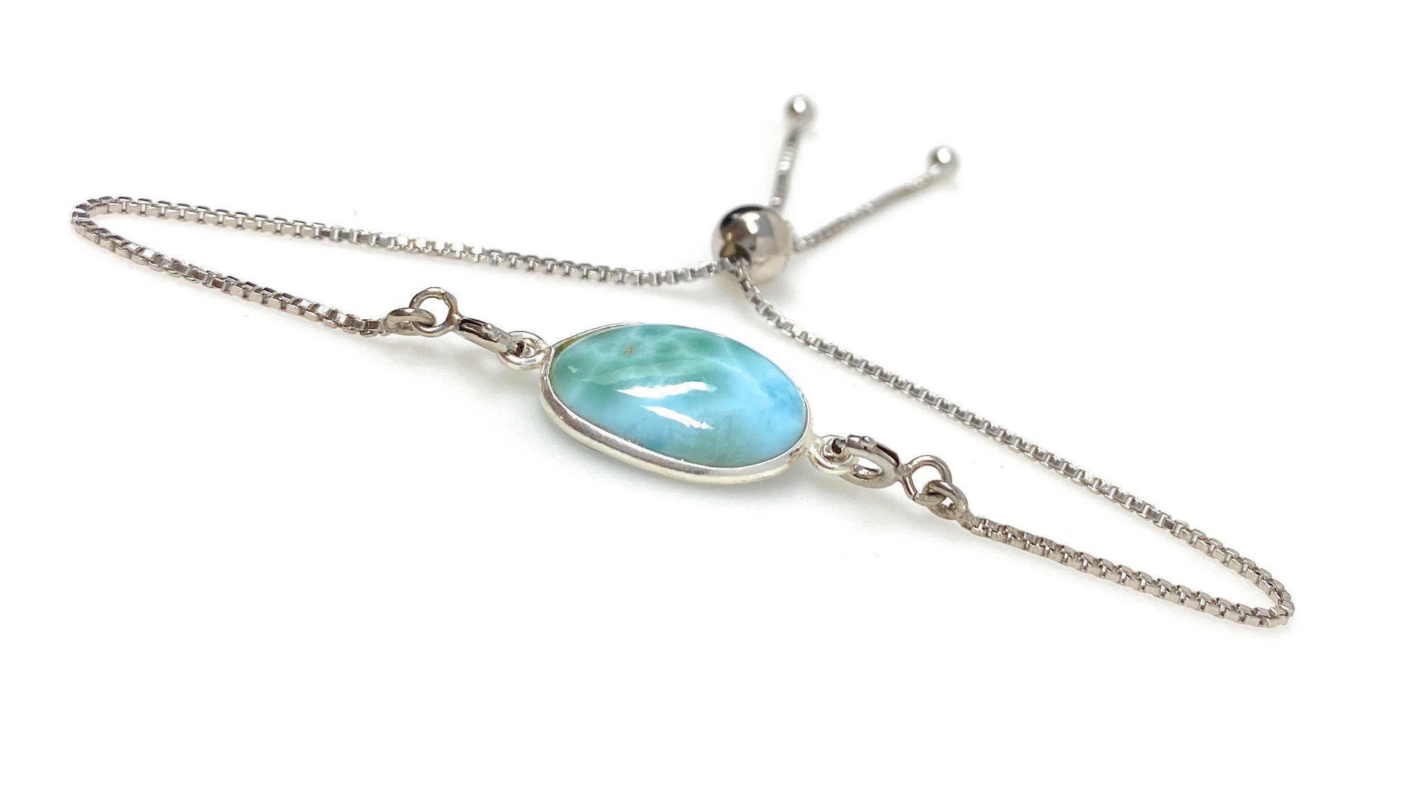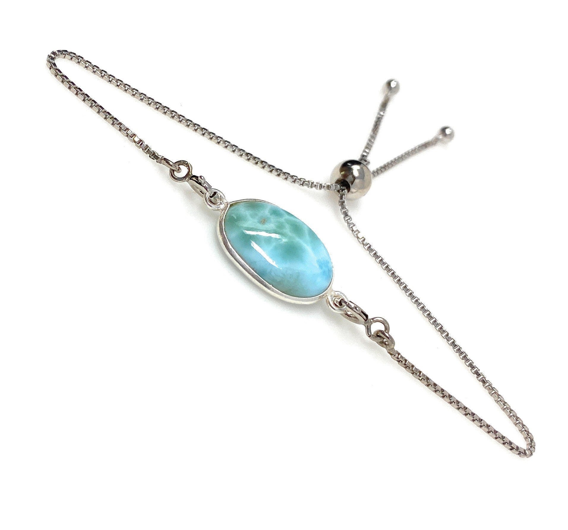 Larimar Gemstone Bracelet, Sterling Silver Adjustable Bolo Bracelet, AAA Quality Dominican Republic Larimar Bracelet, Gifts for Her