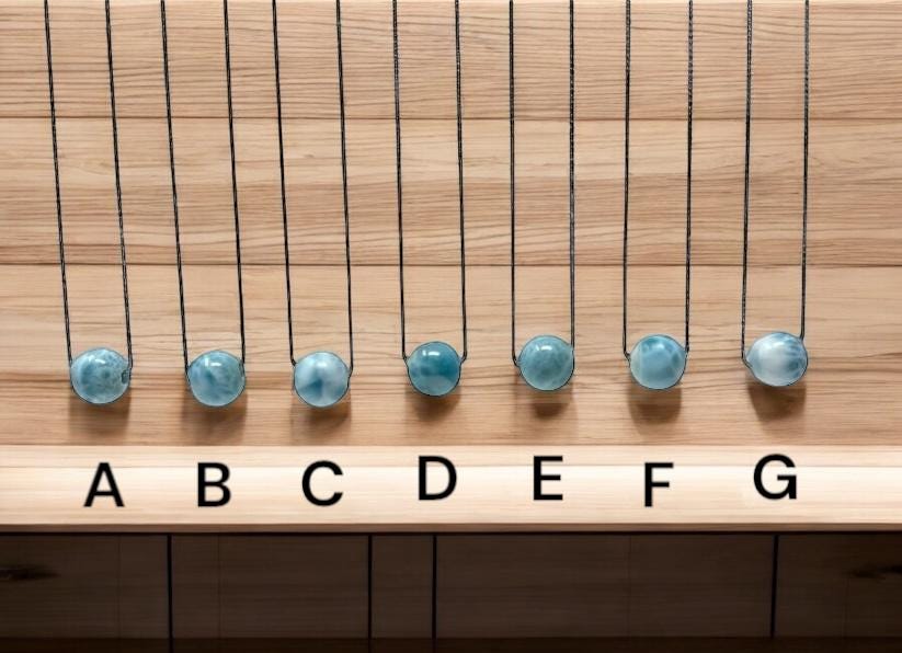 Larimar is the embodiment of the tranquil Sea and Sky energies. Its soft, soothing blues and calming turquoise is streaked with white patterns that resemble sunlight dancing beneath Caribbean waters. It brings the ancient wisdom of Atlantis and the healing power of dolphins to harmonize the body and soul.