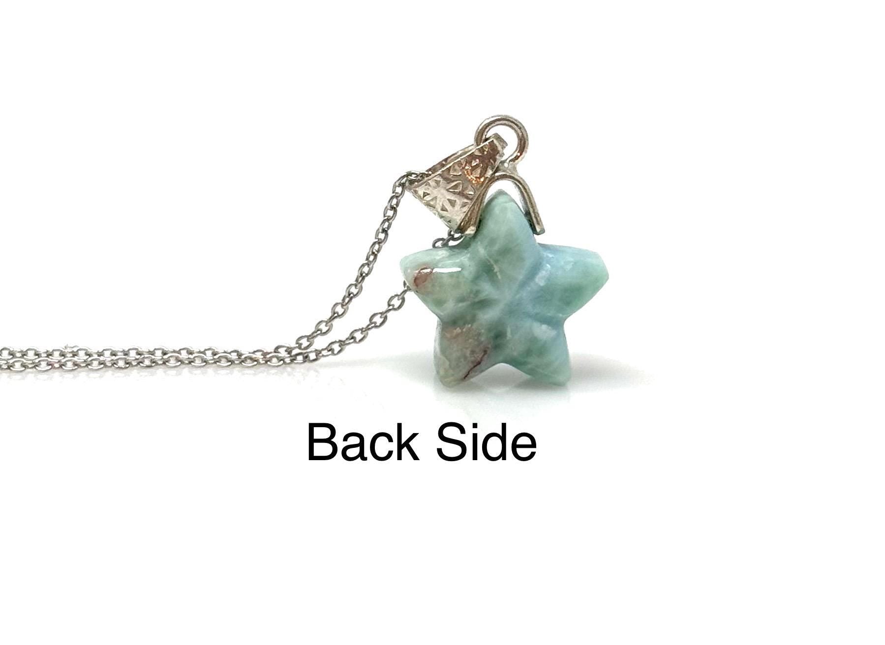 Larimar Gemstone Necklace, Hand Carved Larimar Star Necklace, Bohemian Jewelry Gifts, Dominican Republic Larimar Necklace, 1.30” x 0.75”