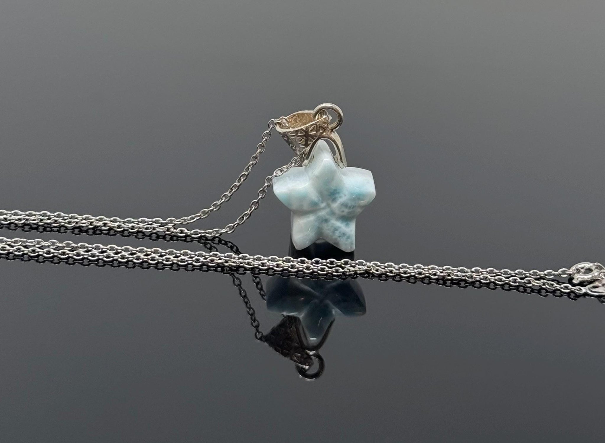 Larimar Star Shape Handmade Gemstone Sterling Pendant Necklace