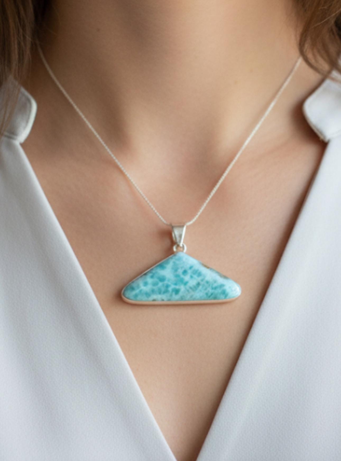 Whether you're treating yourself or gifting a loved one, the Sterling Silver Larimar Pendant is a truly special piece that will uplift the spirit and elevate your style.