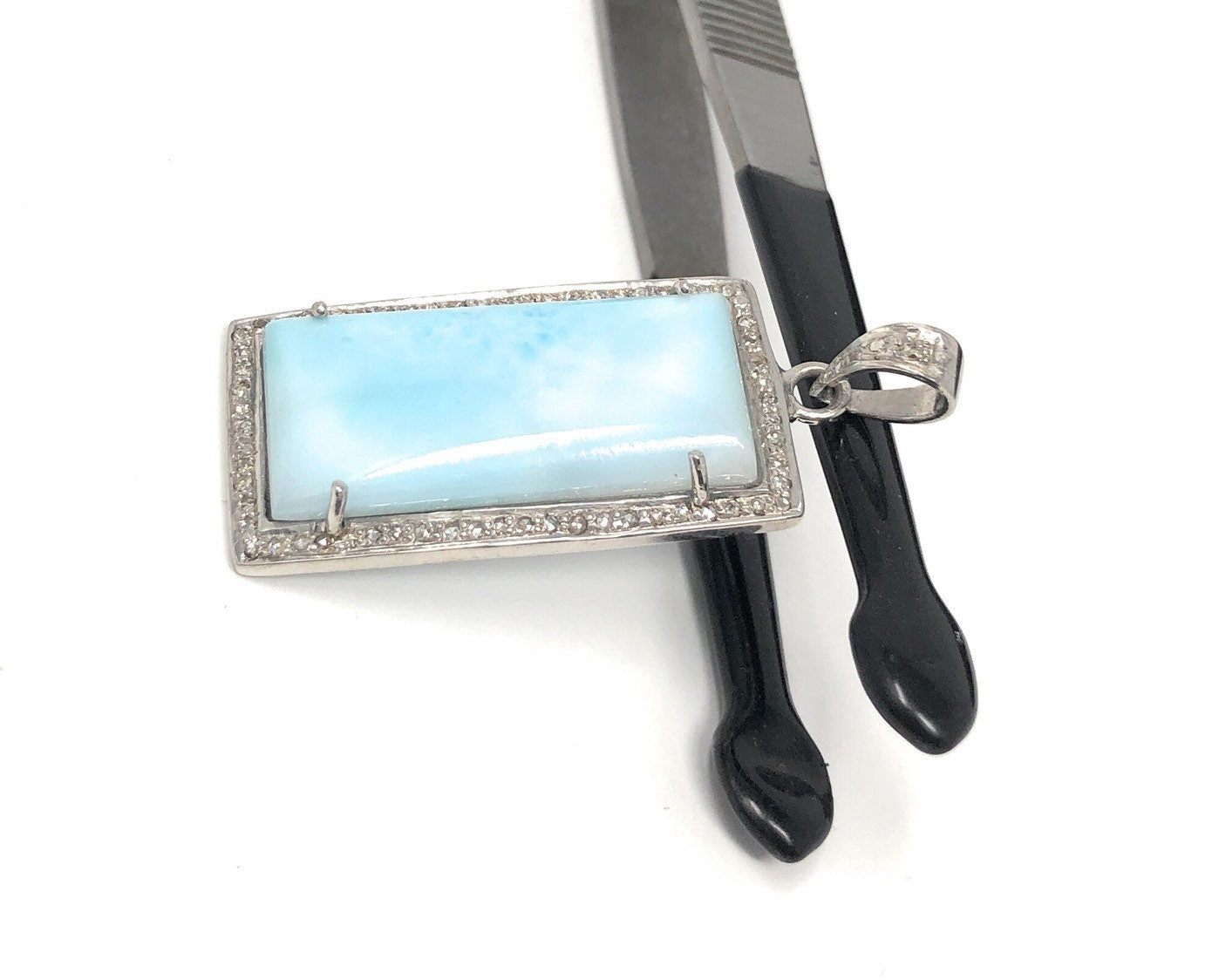 Larimar Gemstone Pendant, Natural Larimar Diamond Pendant, Pave Diamond Pendant, Sterling Silver Jewelry, DIY Pendant