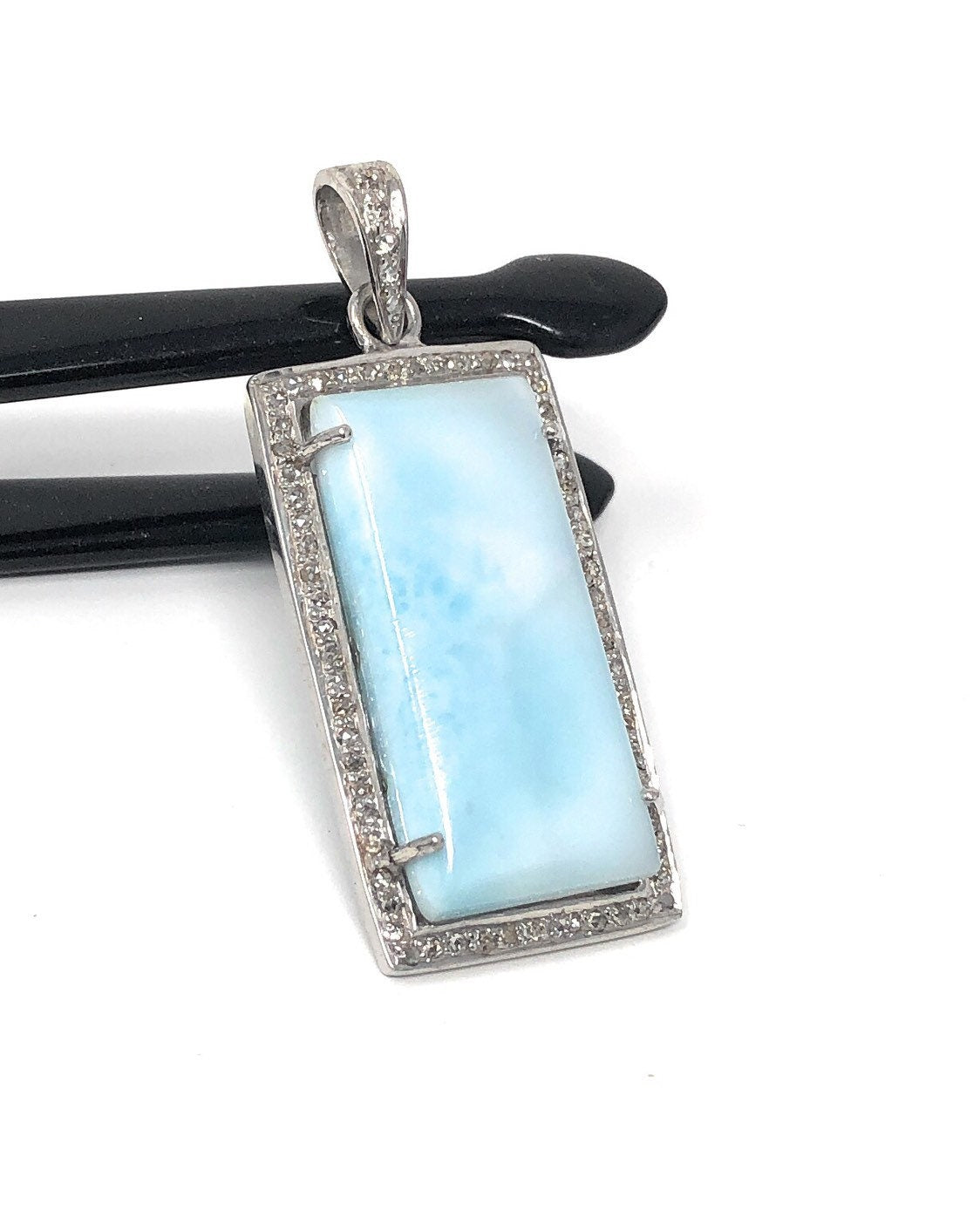 This beautiful Handmade AAA+ Grade Natural Larimar Gemstone Rectangle Shape 925 Sterling Silver Large Pave Diamond Bezel Setting Pendant is an excellent choice for any occasion and makes a great gift for the loved ones.