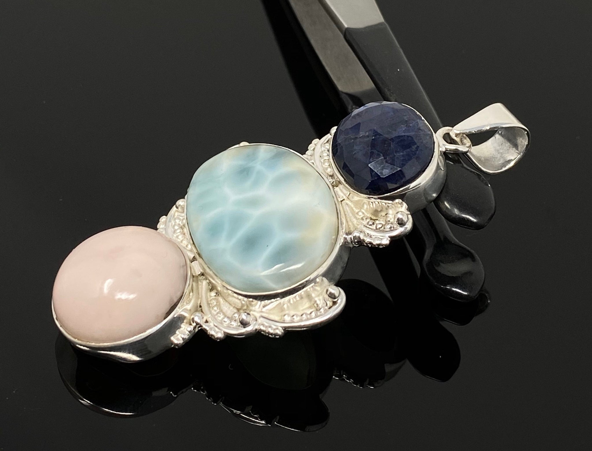 Larimar with Blue Sapphire and Pink Opal Gemstone Sterling Silver Pendant Jewelry at Wholesale Price.