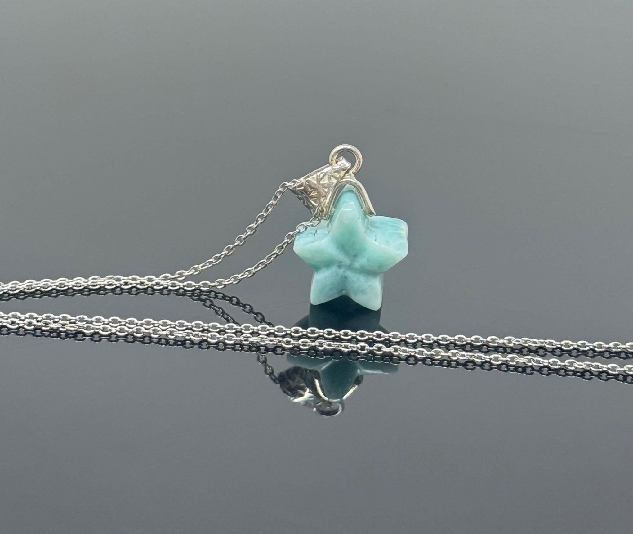 Larimar Necklace, Atlantis Stone, Healing Stone, Silver Star Bohemian Jewelry, Dominican Republic Larimar Jewelry Gifts, 1.20”x0.60”