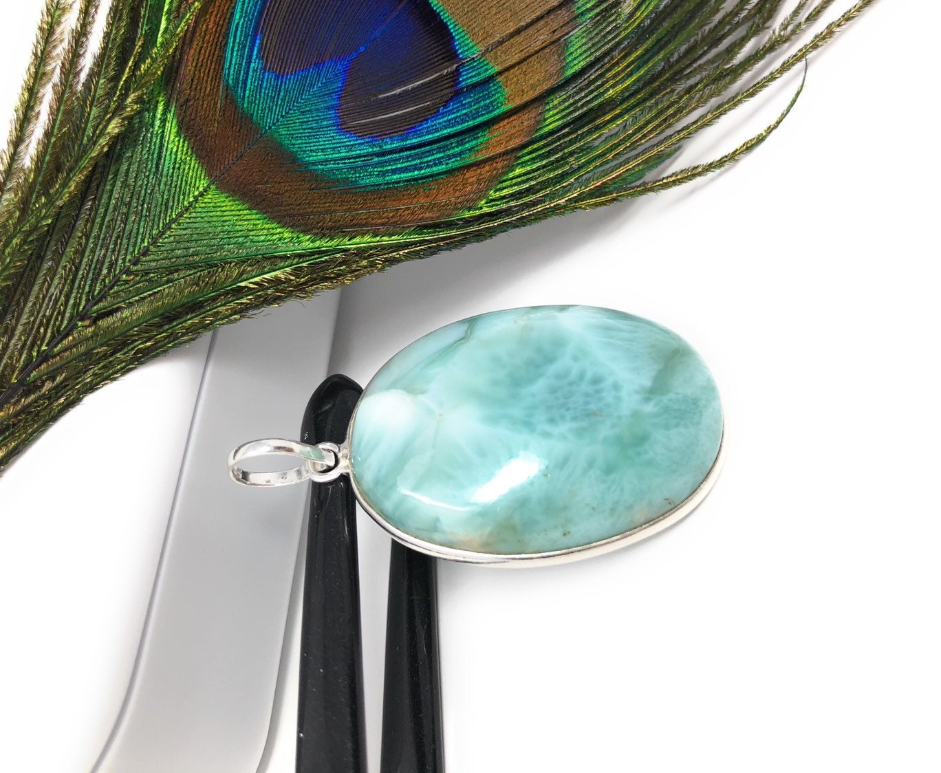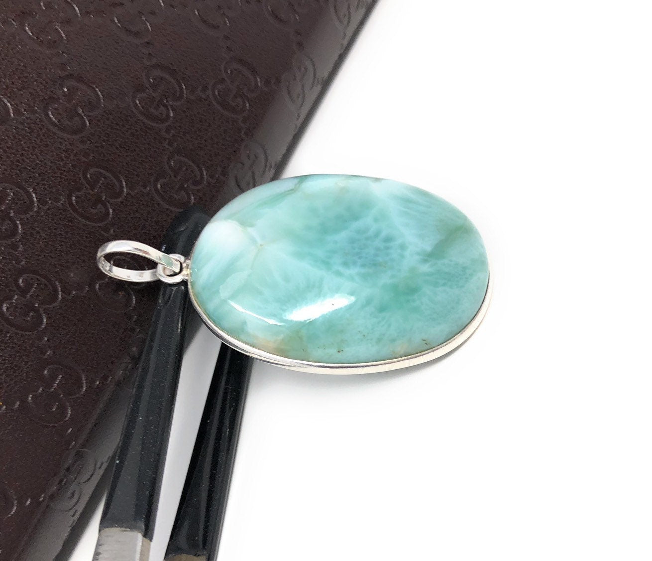 Larimar Pendant, Gemstone Pendant, Larimar, Gemstone Jewelry, Silver Pendant, Sterling Silver Pendant, Natural Gemstone Pendant, 47.65x25mm