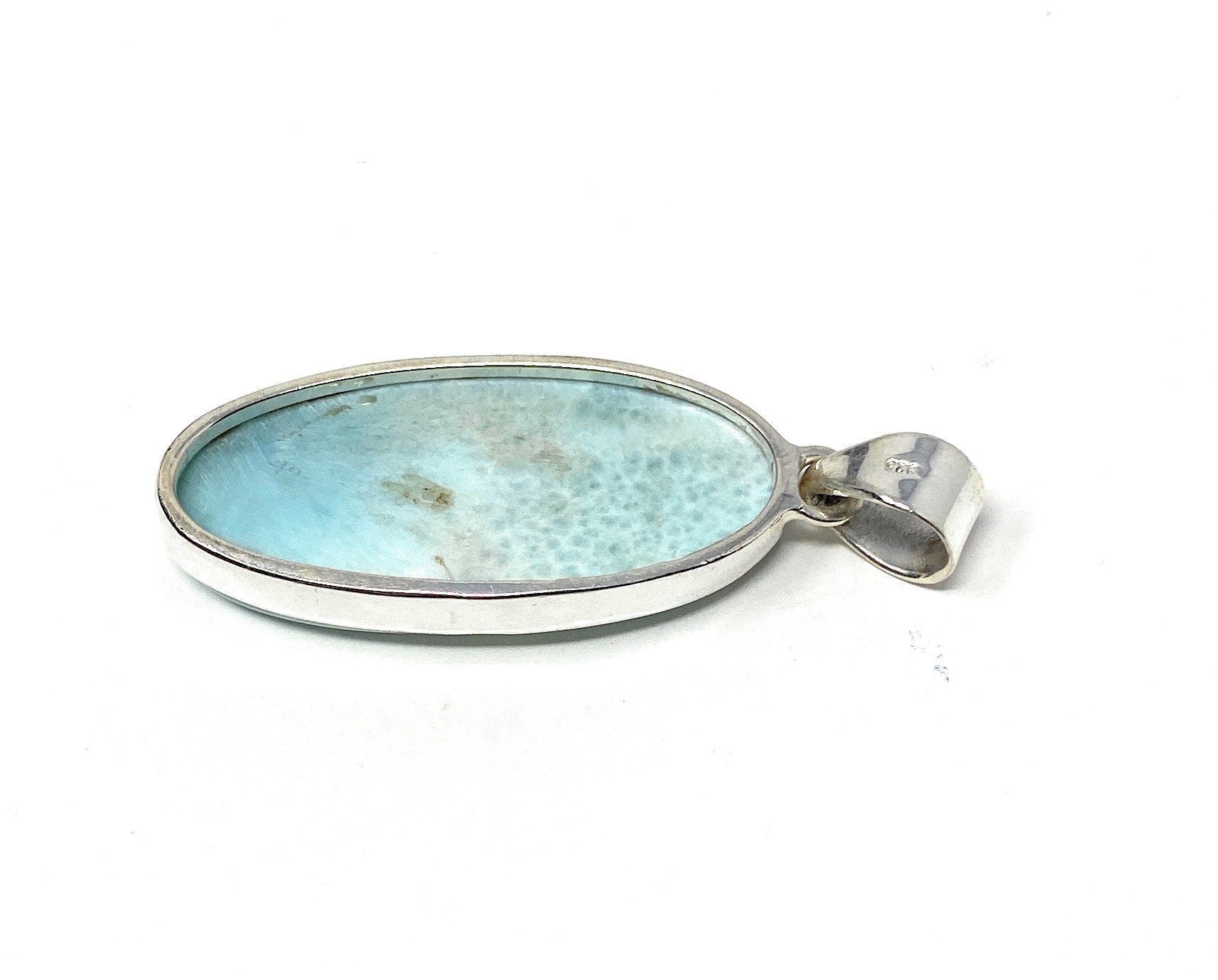 Larimar Pendant, Gemstone Pendant, Sterling Silver Pendant, Bohemian Jewelry, Natural Gemstone Pendant, 49.35 X 18.5mm