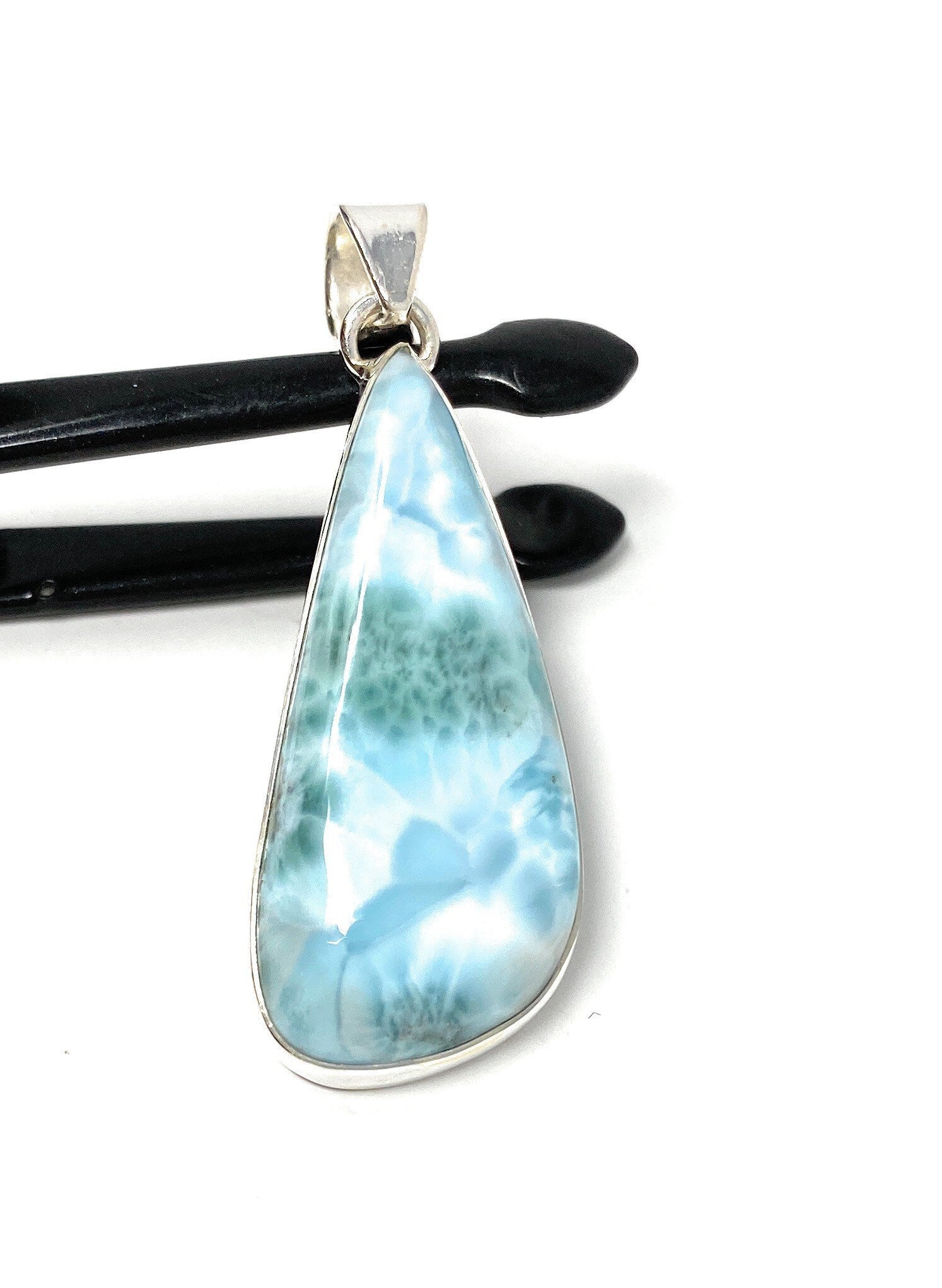 Larimar Pendant, Gemstone Pendant, Bohemian Jewelry, Sterling Silver Pendant, Natural Gemstone Pendant, 55.25mm X 19mm