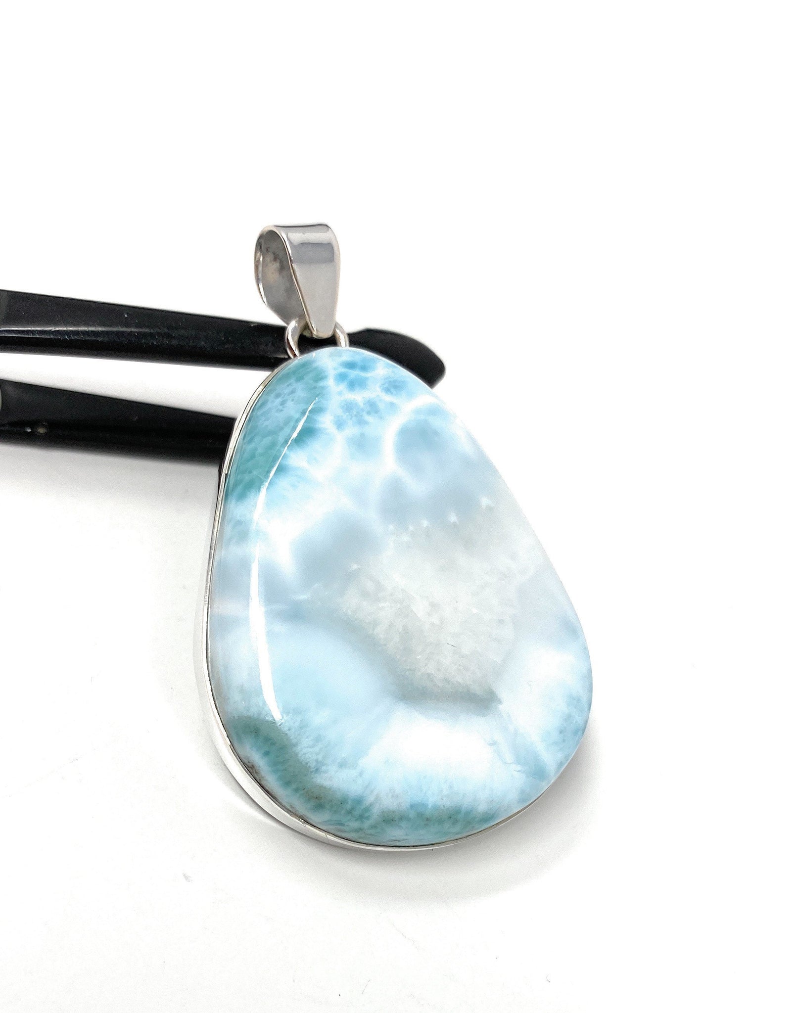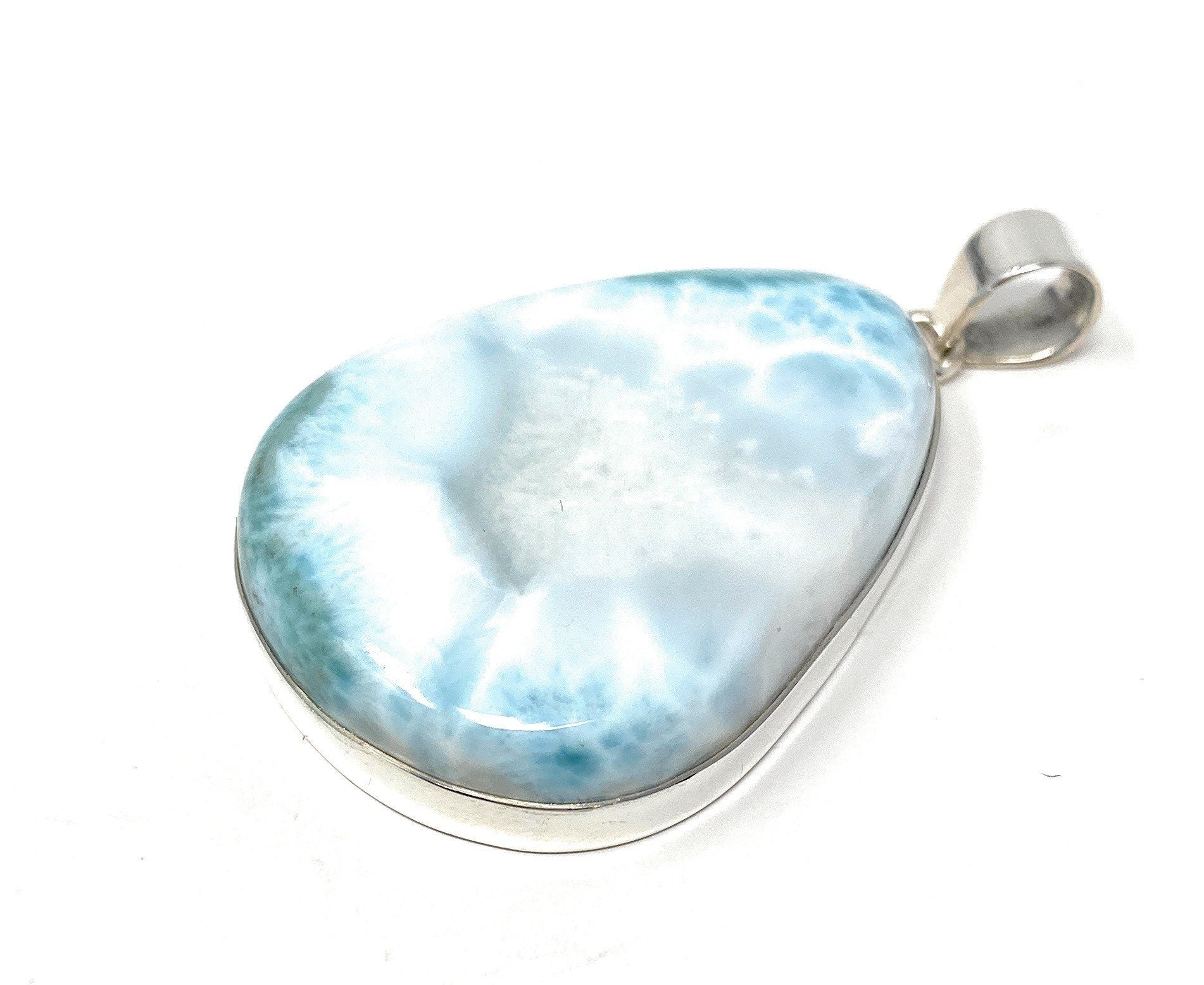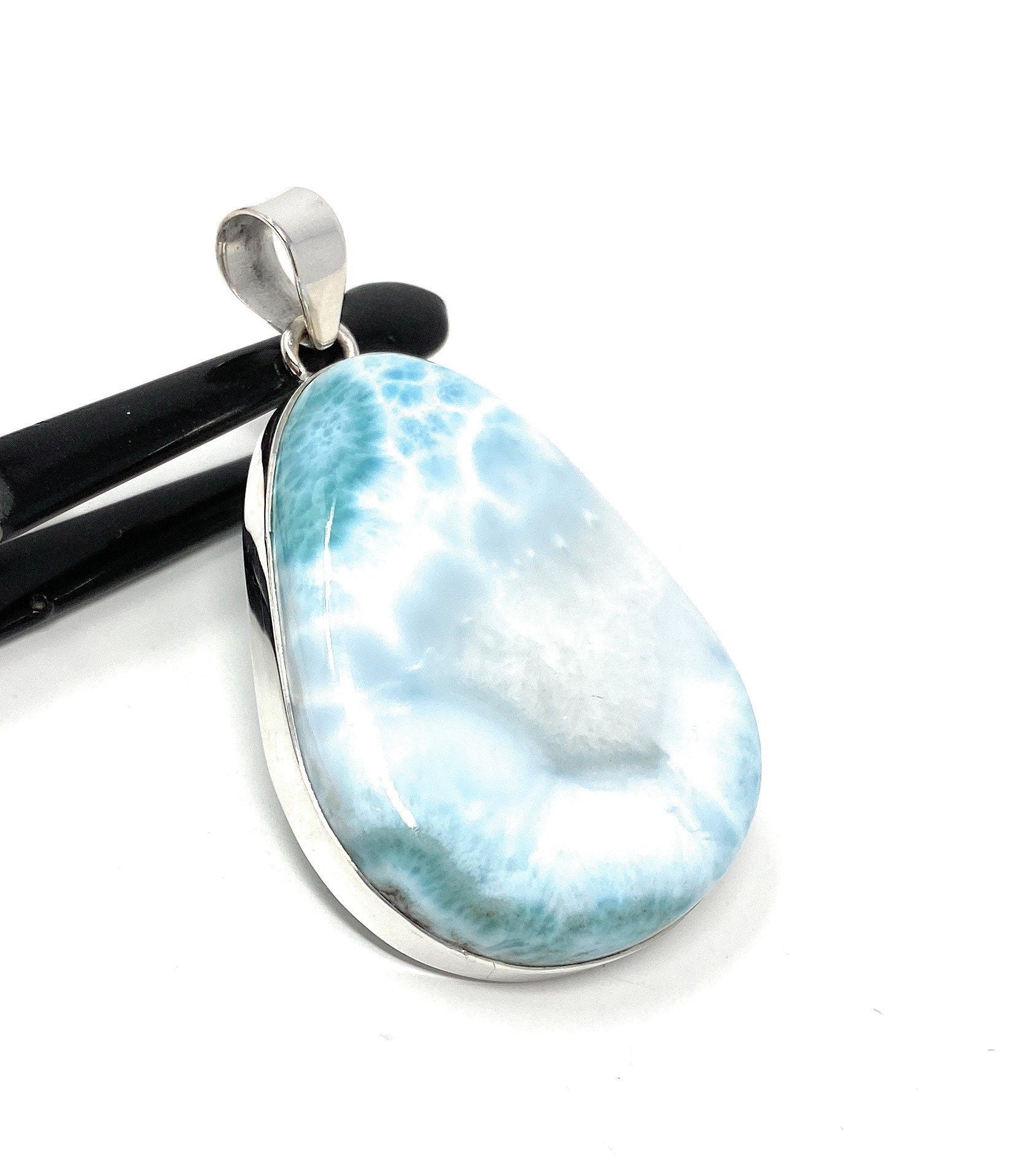 Larimar Pendant, Gemstone Pendant, Bohemian Jewelry, Sterling Silver Pendant, Natural Gemstone Pendant, 60mm x 35mm