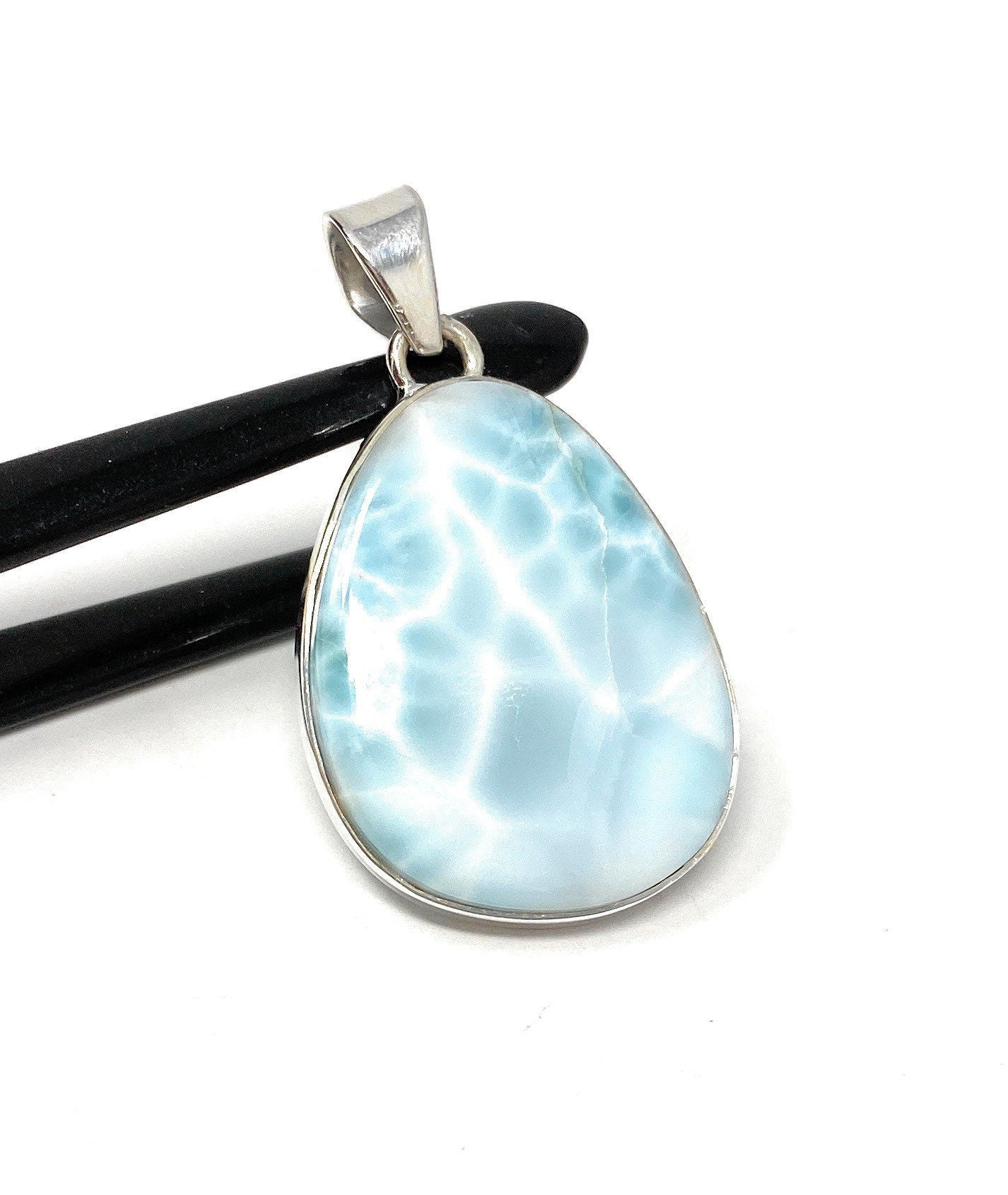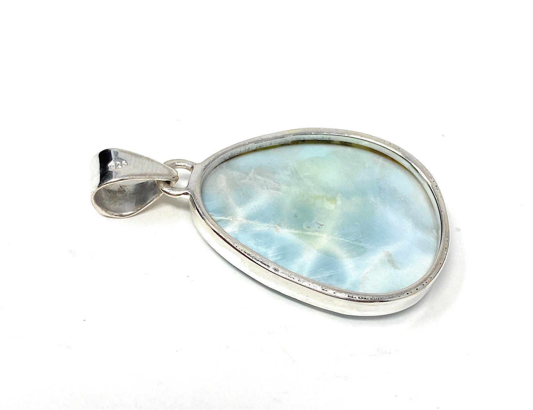 Larimar Pendant, Gemstone Pendant, Bohemian Jewelry, Sterling Silver Pendant, Natural Gemstone Pendant, 43mm X 25.3mm