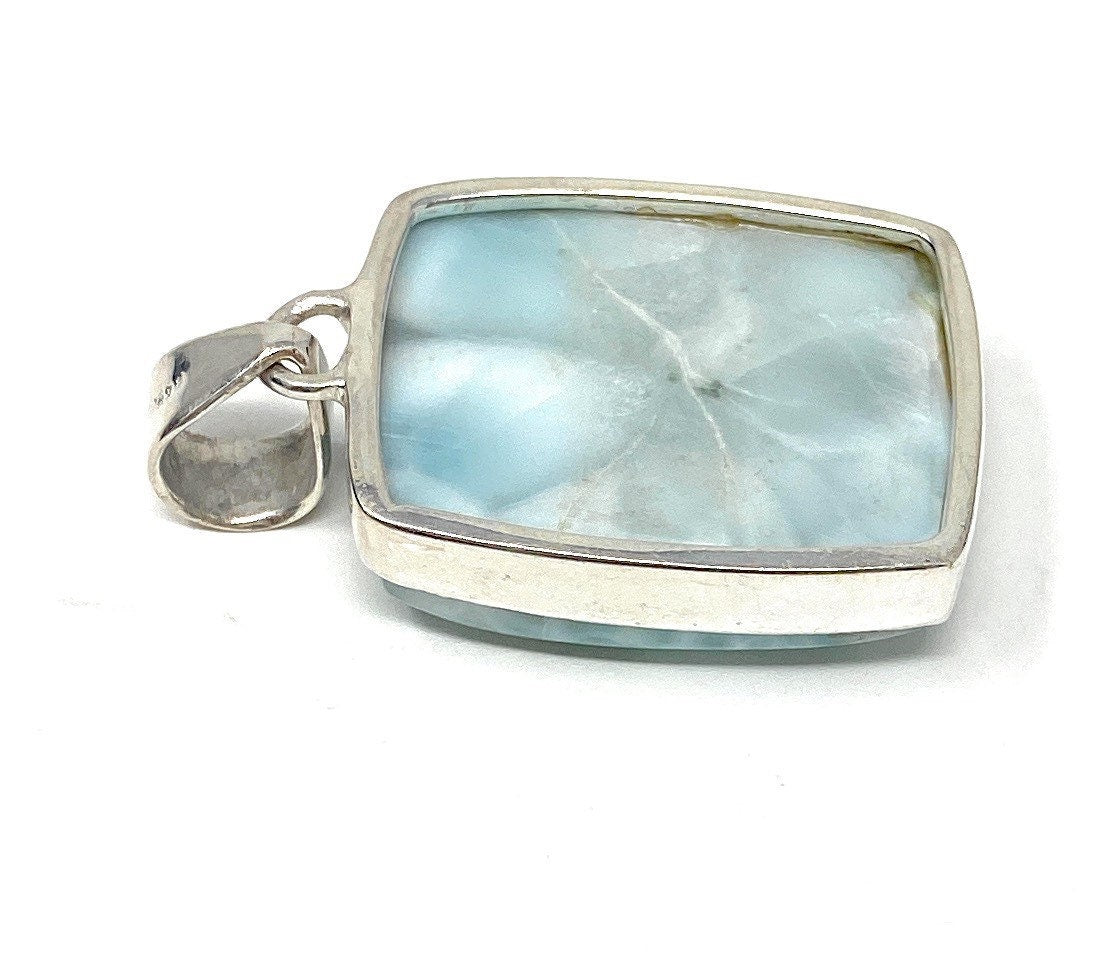Larimar Pendant, Gemstone Pendant, Bohemian Jewelry, Sterling Silver Pendant, Natural Gemstone Pendant, 40mm X 23.5mm
