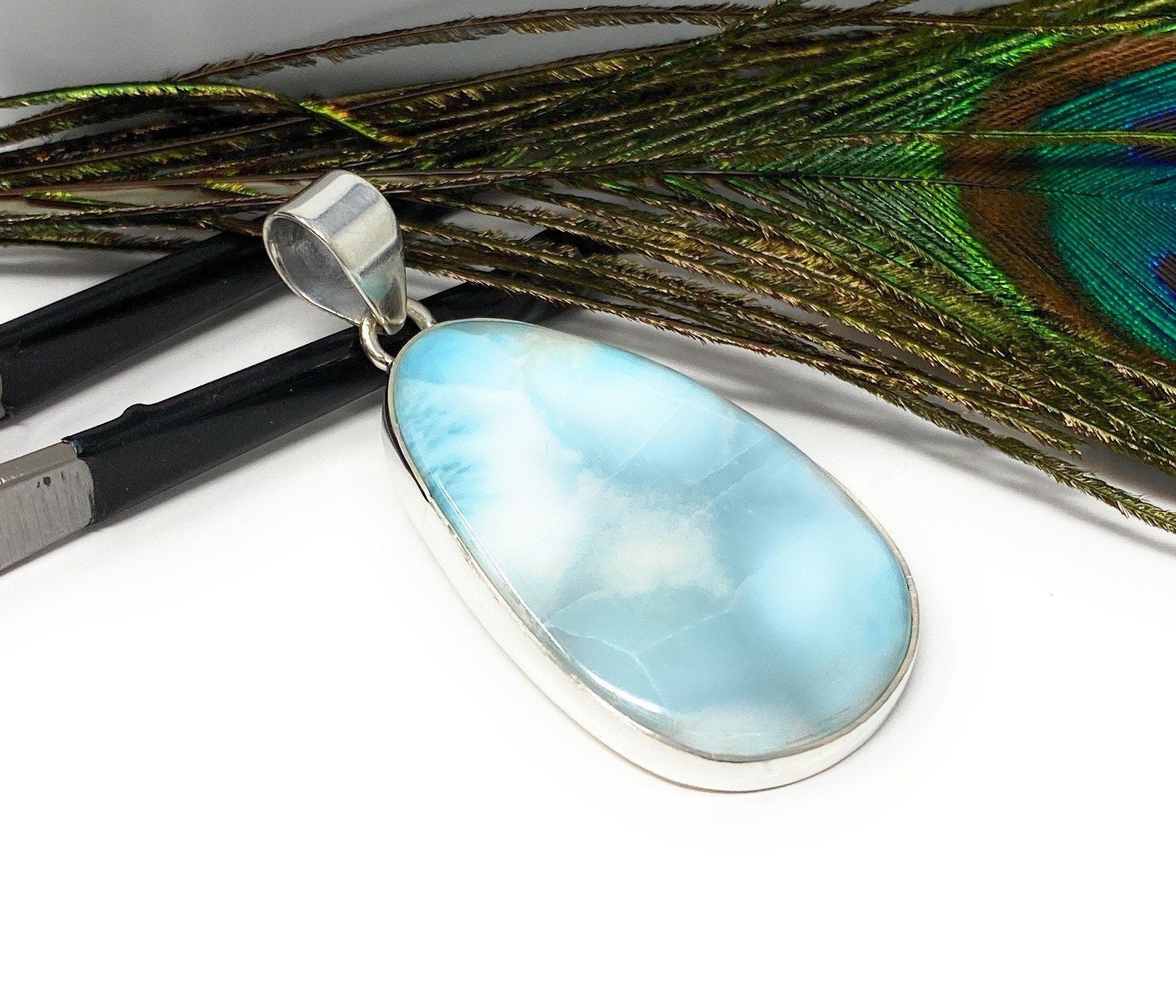 Larimar Pendant, Gemstone Pendant, Bohemian Jewelry, Sterling Silver Pendant, Natural Gemstone Pendant, 53.75 X 28.15mm
