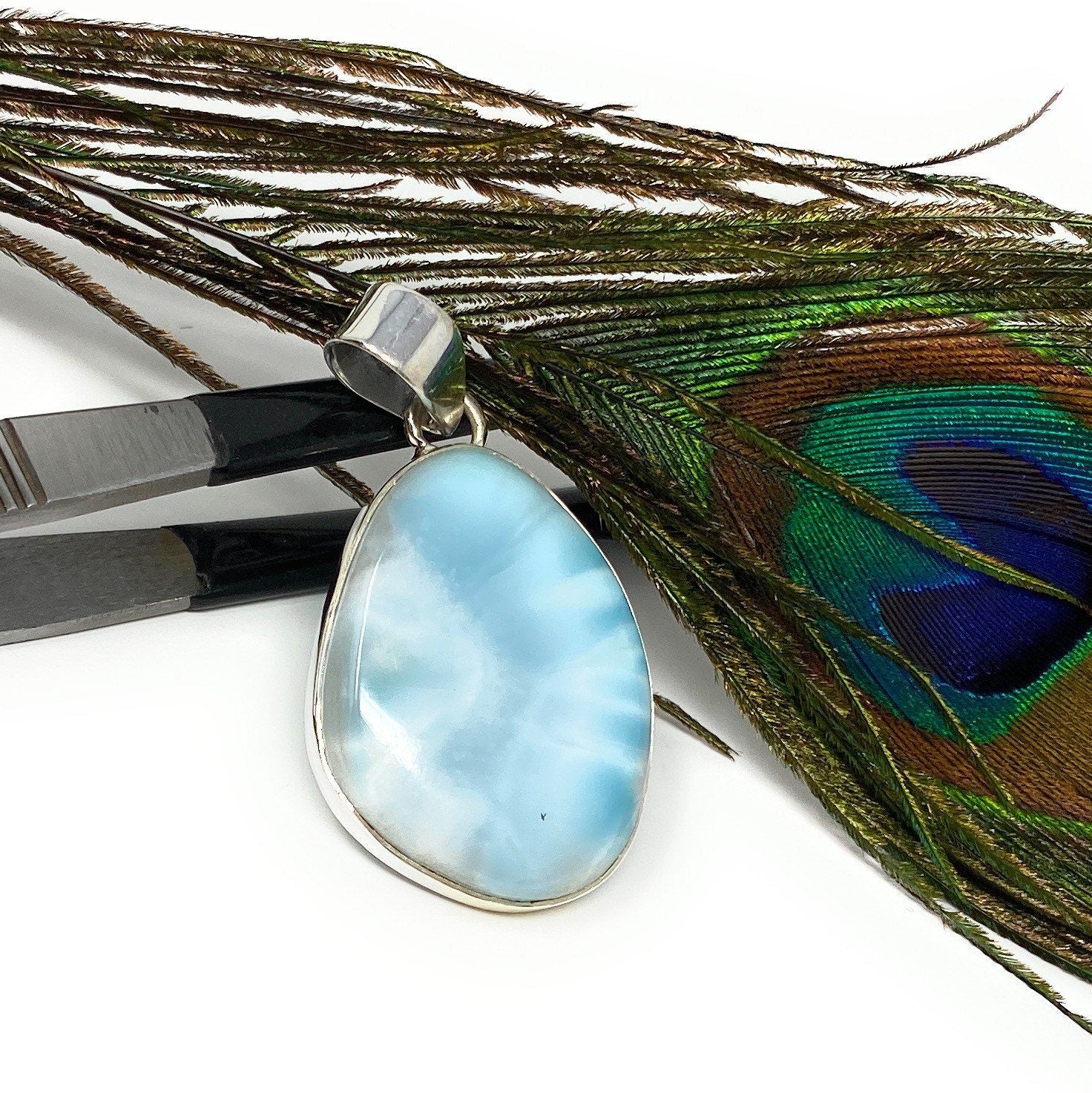 Larimar Pendant, Gemstone Pendant, Bohemian Jewelry, Sterling Silver Pendant, Natural Gemstone Pendant, 43.5 x 23.15mm