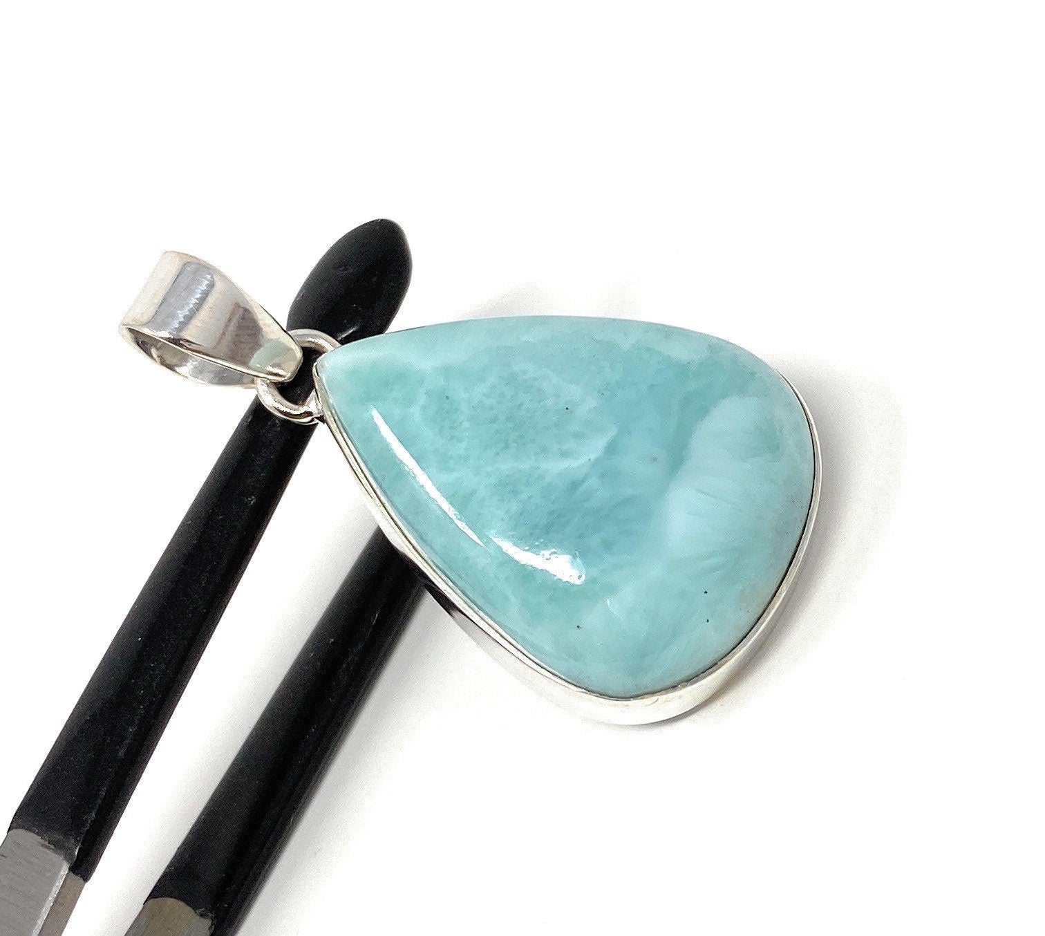 This beautiful Handmade AAA Grade Natural Larimar Gemstone Drop Shape 925 Sterling Silver Large Pendant is an excellent choice for any occasion and makes a great gift for the loved ones.