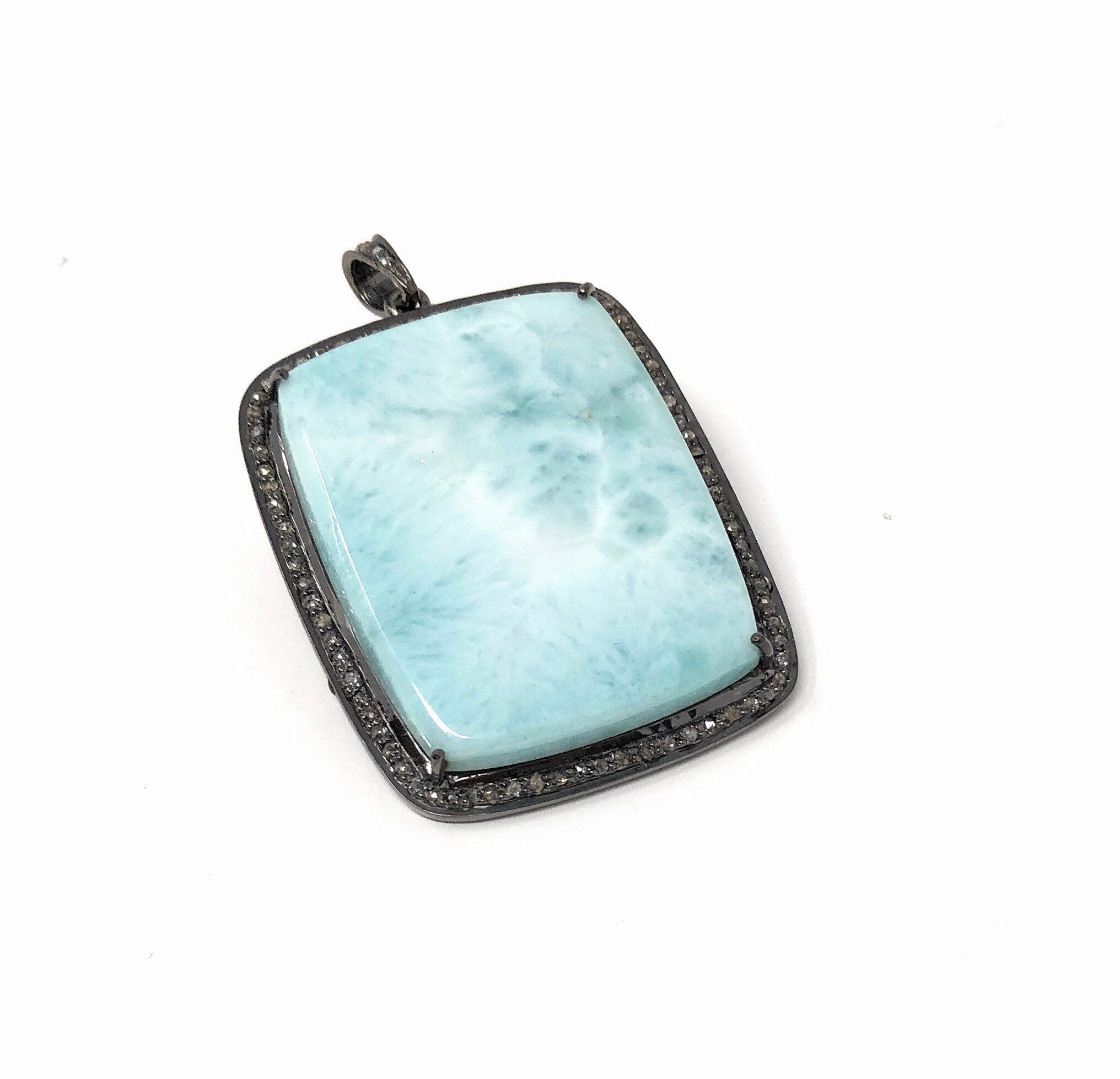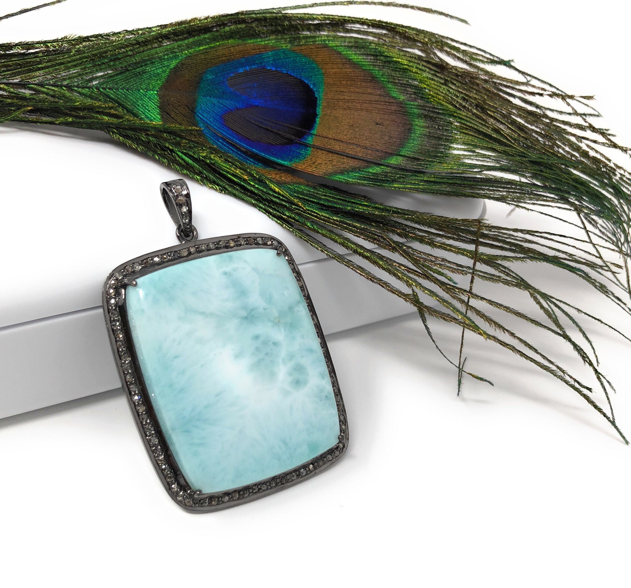 This beautiful Handmade AAA+ Grade Natural Larimar Gemstone Rectangle Shape Oxidized 925 Sterling Silver Large Pave Diamond Bezel Setting Pendant is an excellent choice for any occasion and makes a great gift for the loved ones.