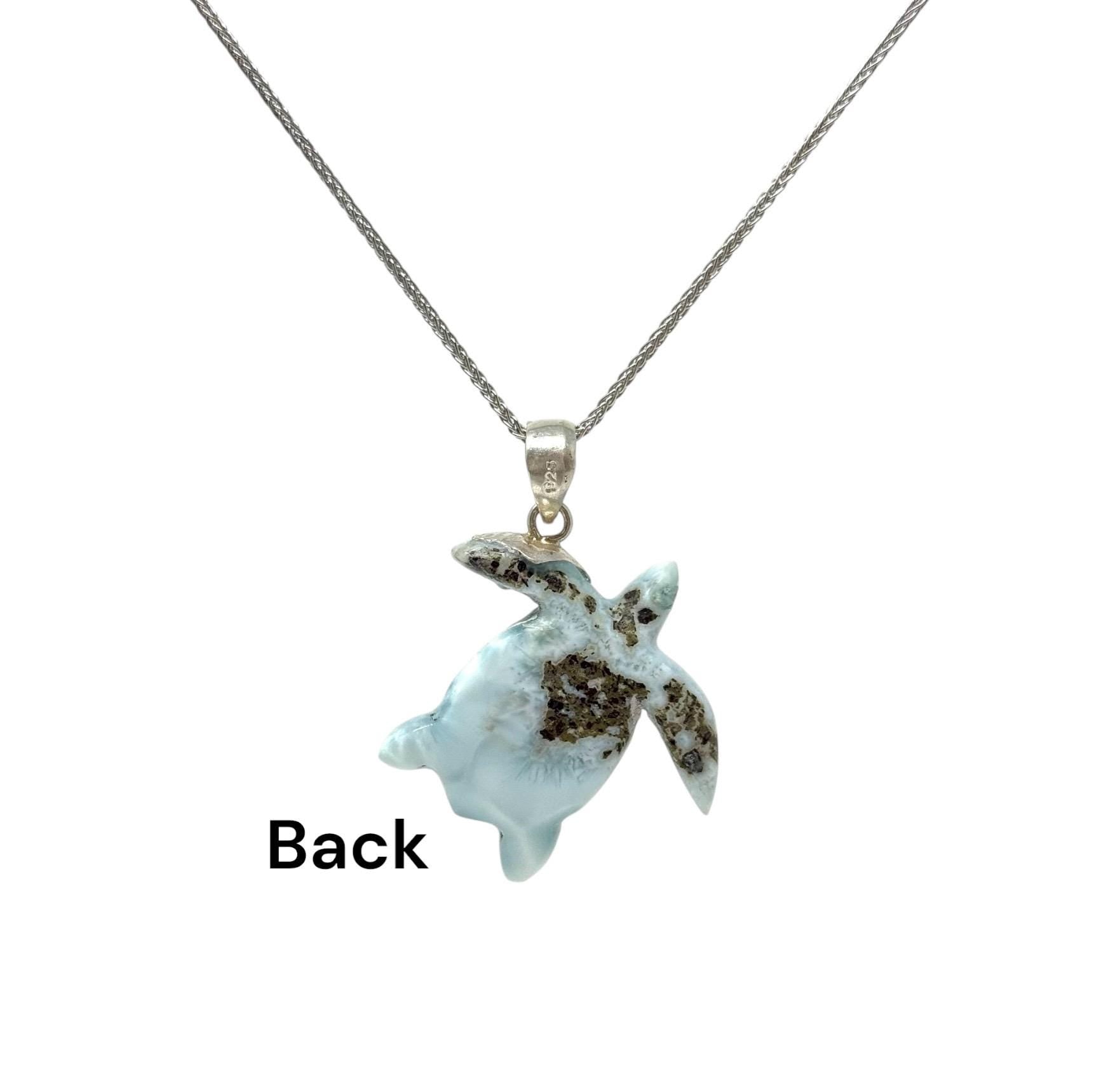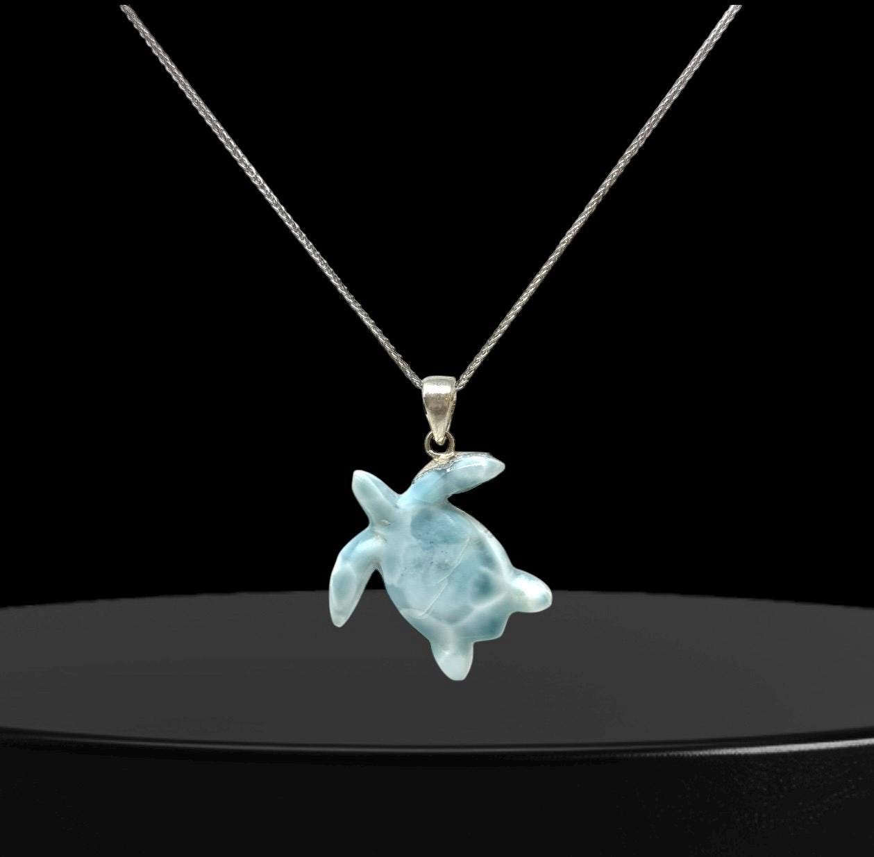 Larimar Sea Turtle Tortoise Pendant Necklace , Silver Bohemian Jewelry, Dominican Republic Larimar Necklace Gifts for Her, 1.75"x 1.25”