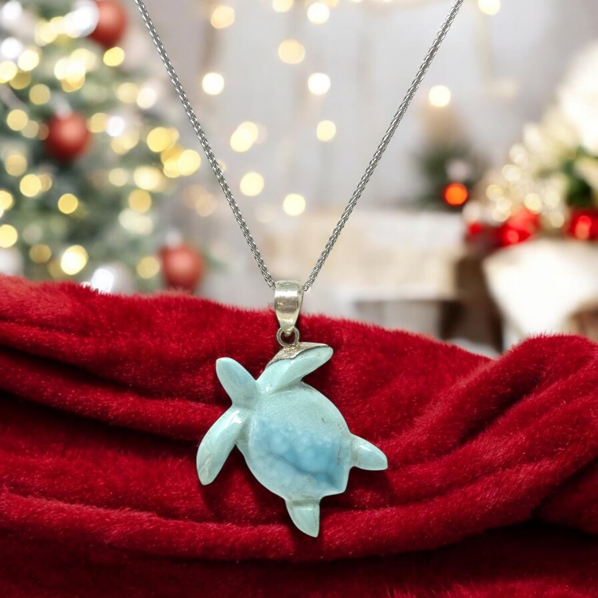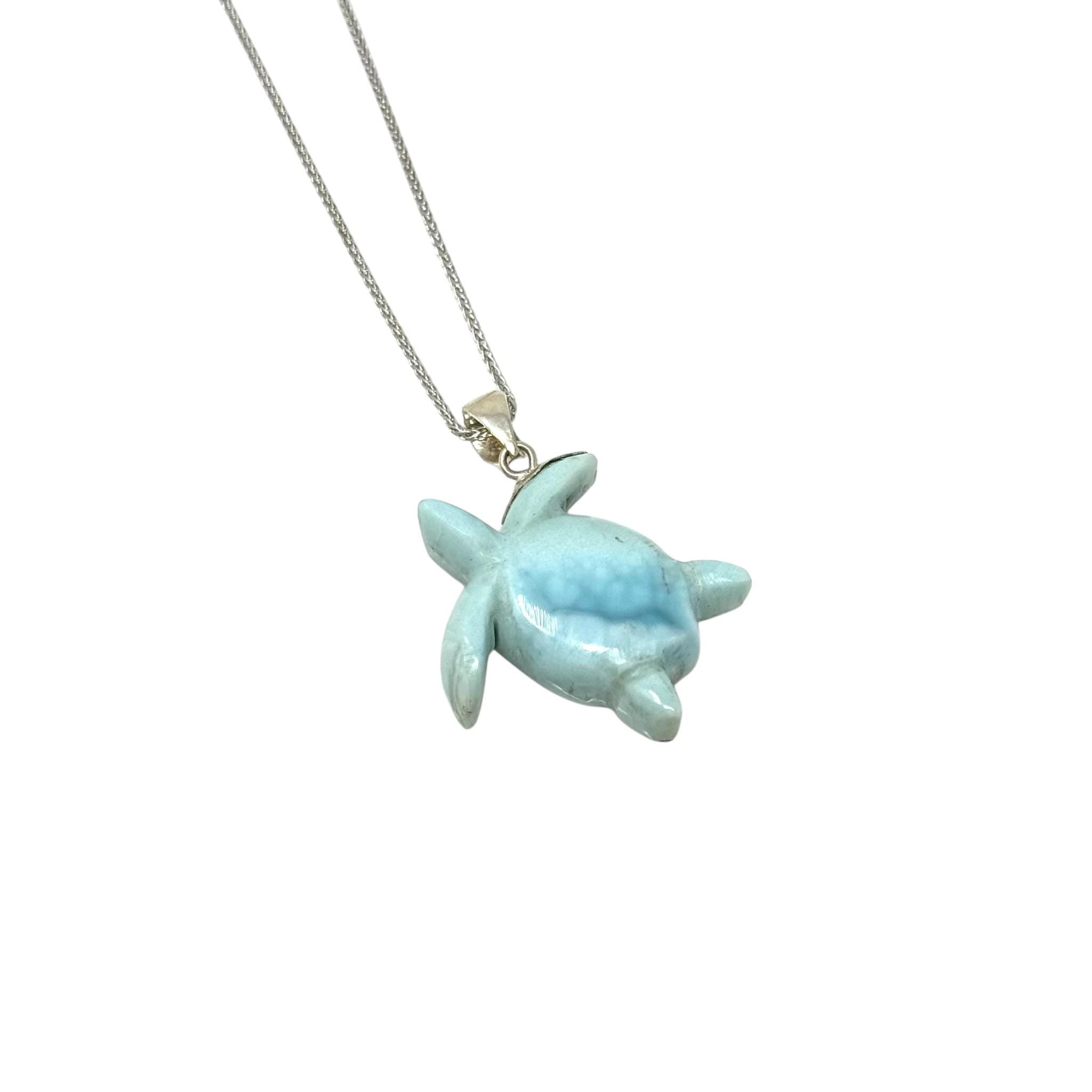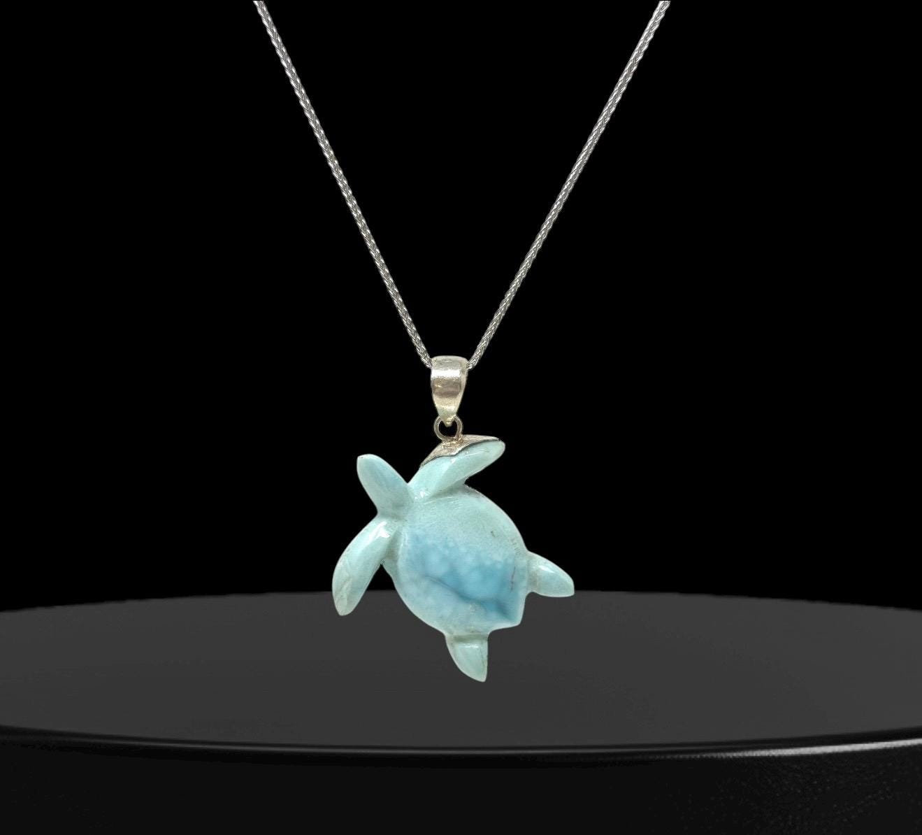 Larimar Sea Turtle Tortoise Pendant Necklace , Silver Bohemian Jewelry, Dominican Republic Larimar Necklace Gifts for Her, 1.75"x 1.25”