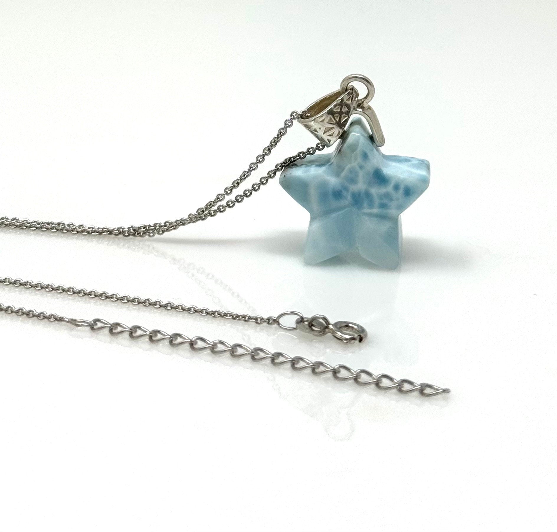 Larimar Star Necklace , Sterling Silver Hand Carved Larimar Pendant Necklace, Bohemian Jewelry, Natural Dominican Republic Larimar Pendant