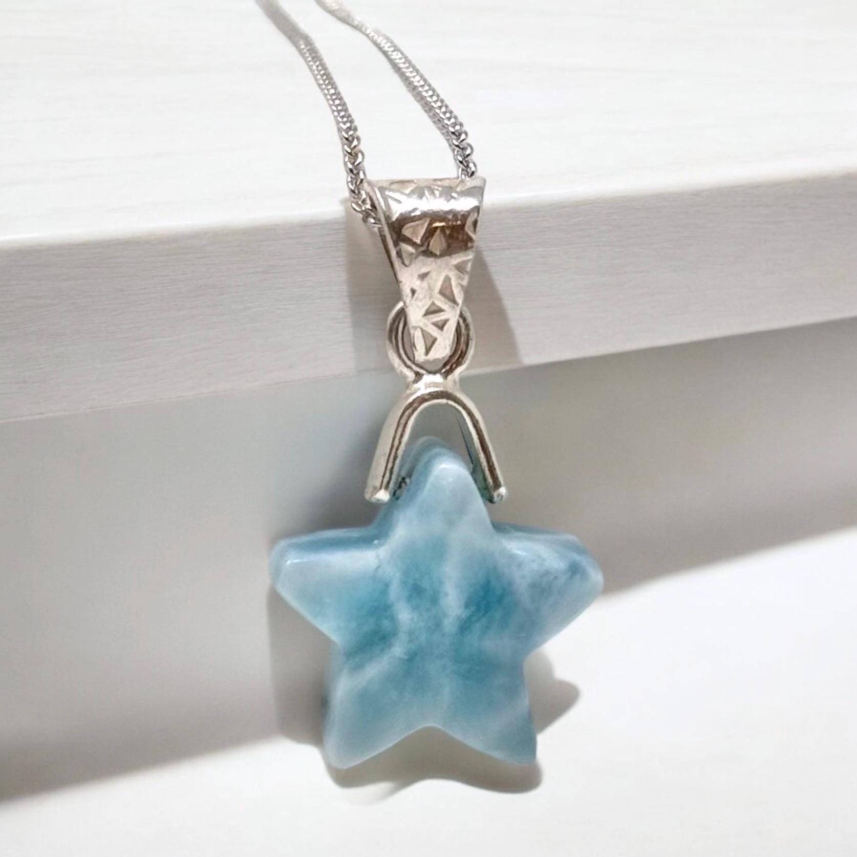 Larimar Star Necklace , Sterling Silver Larimar Pendant Necklace, Bohemian Jewelry, Natural Dominican Republic Larimar Pendant, 1.25”x0.60”