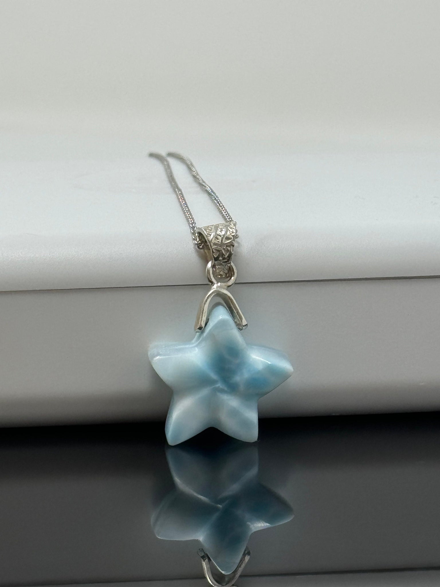 Larimar Star Necklace , Sterling Silver Hand Carved Larimar Pendant Necklace, Bohemian Jewelry, Natural Dominican Republic Larimar Pendant