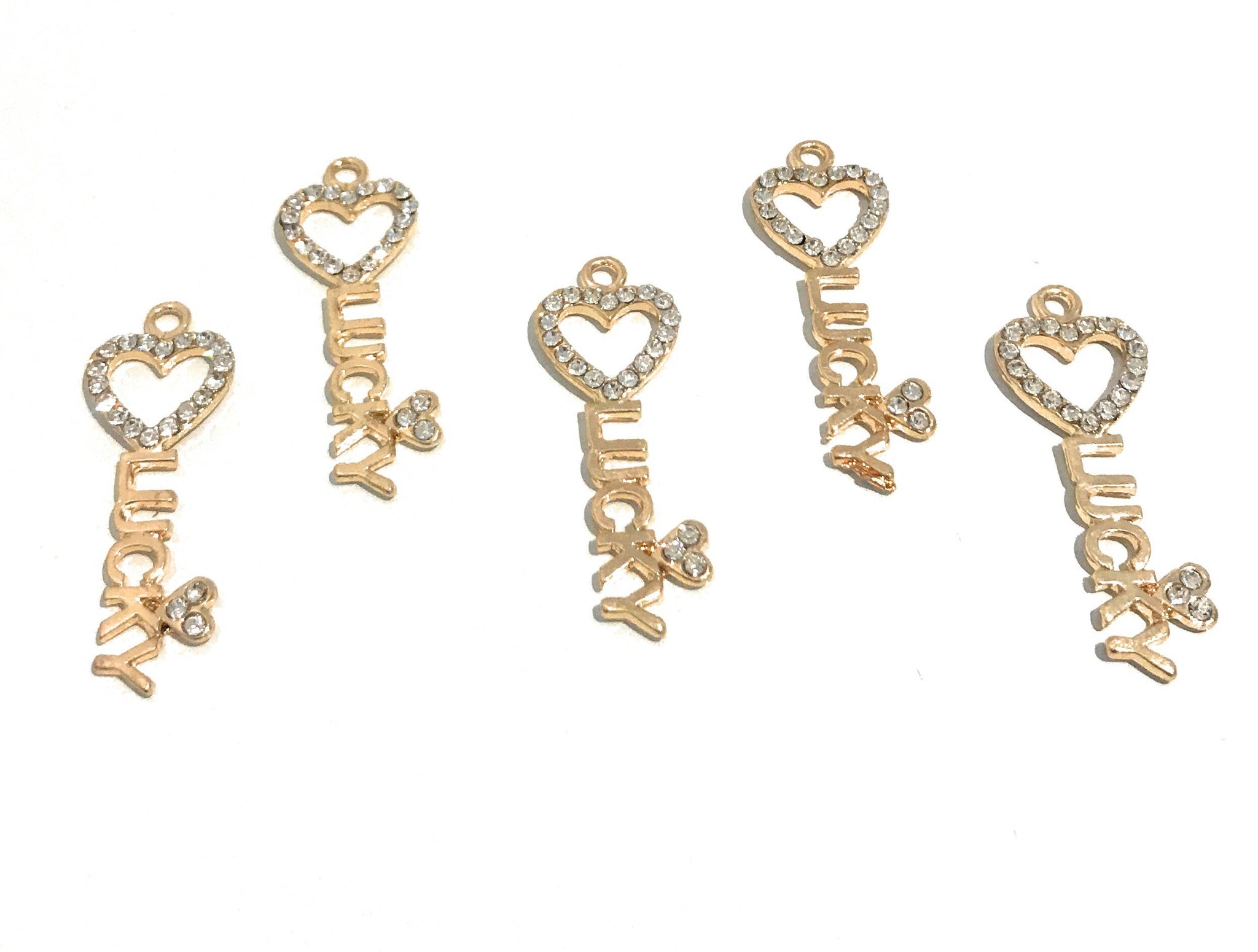 Lucky Charm, Word Charms, Heart Charm, Key Charm, Heart Key Charm, Jewelry Findings, Bulk Charms, Wholesale Charms, Gold Charms, DIY Jewelry