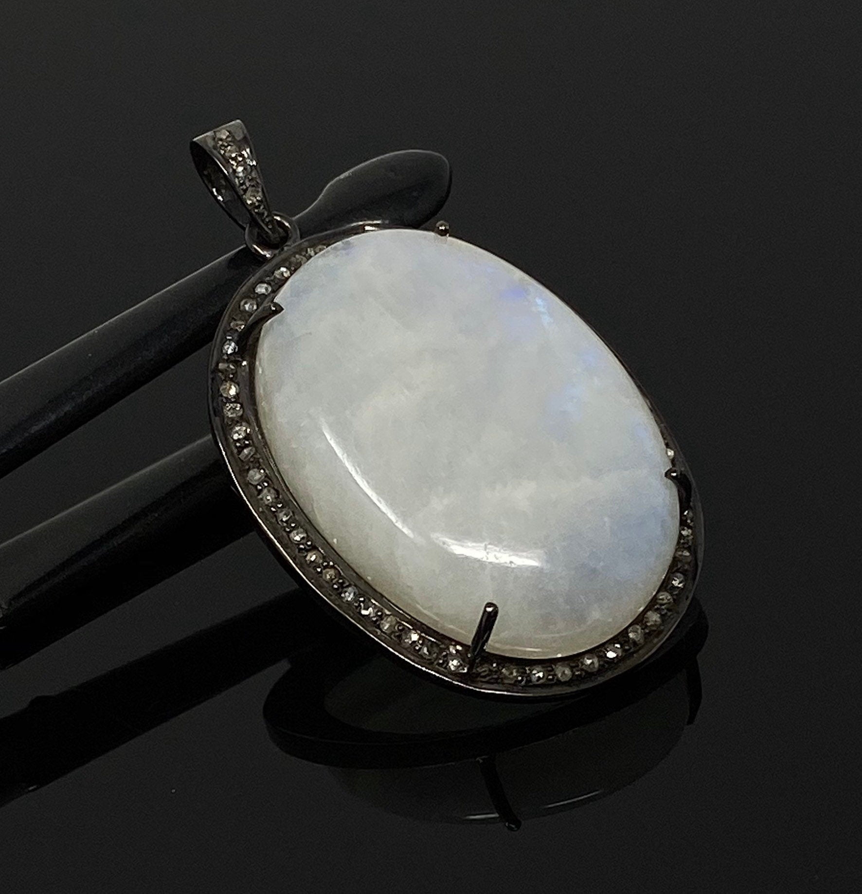 White Moonstone Gemstone Pave Diamond Oxidized Sterling Silver Exclusive Pendant at Wholesale Price.