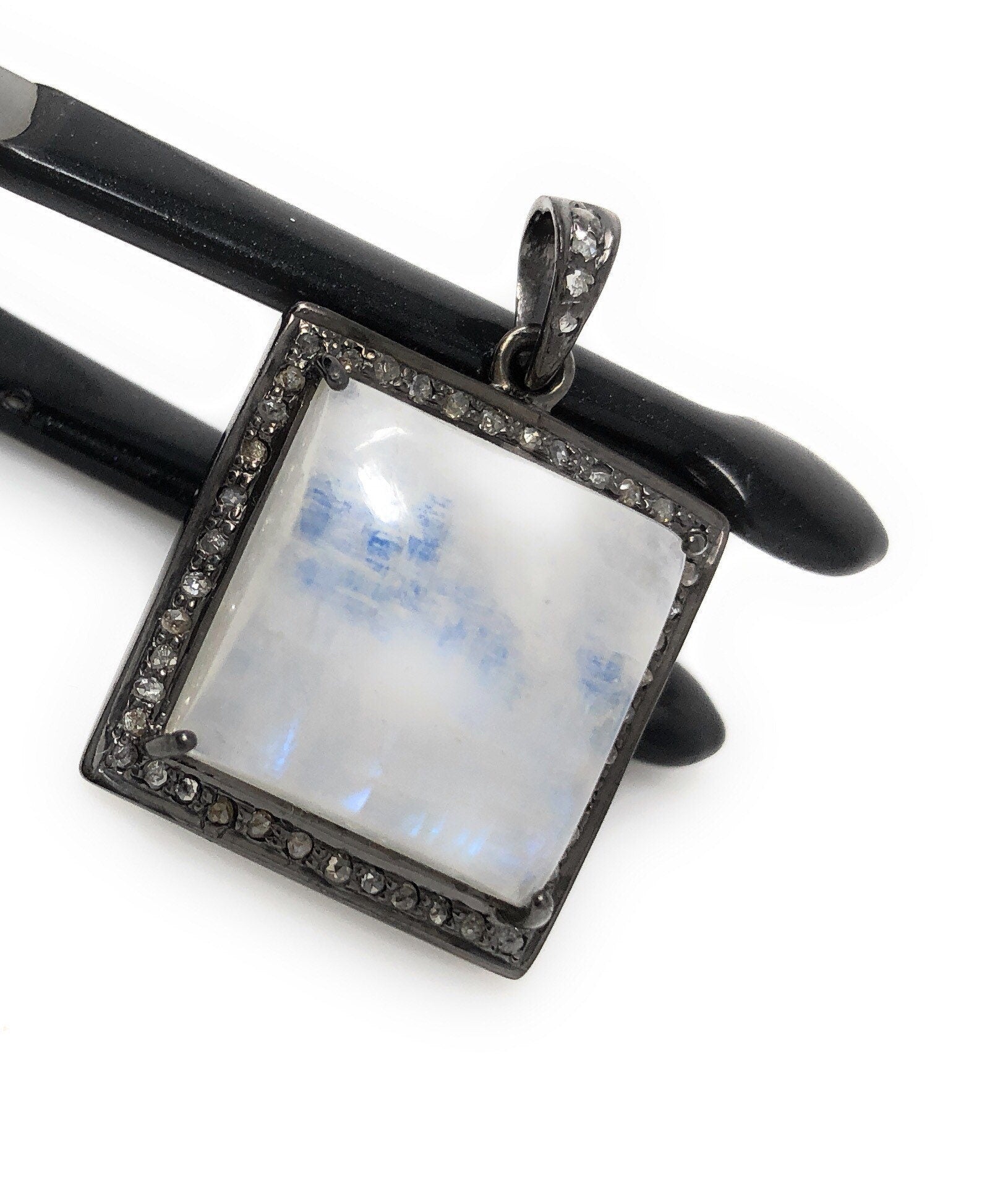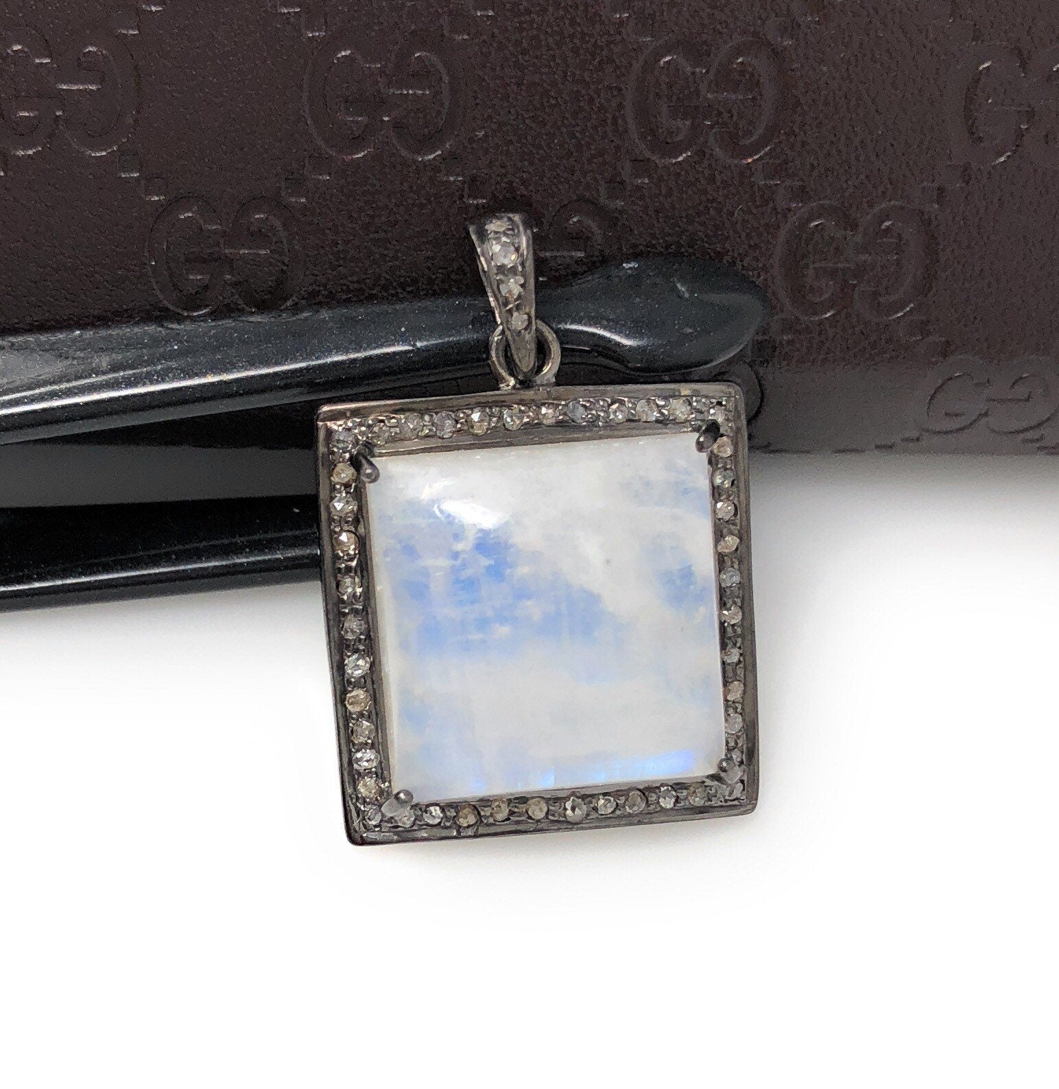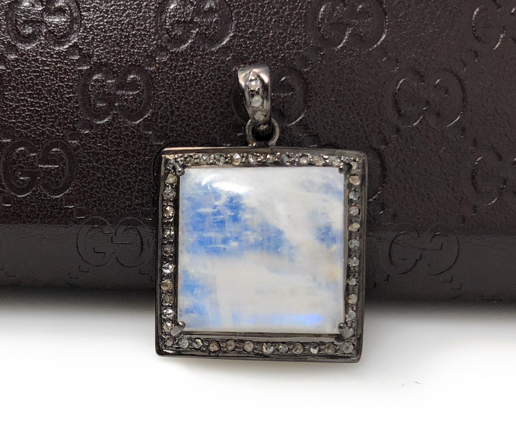 This exclusive beautiful Handmade AAA+ Grade Large Natural Rainbow Moonstone Gemstone Square Shape Oxidized 925 Sterling Silver Pave Diamond Bezel Setting Pendant is an excellent choice for any occasion and makes a great gift for the loved ones.